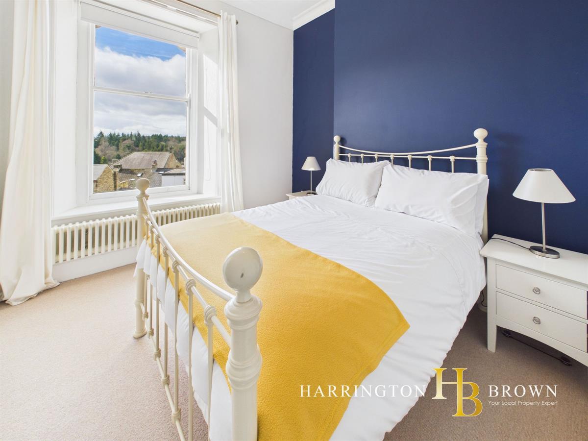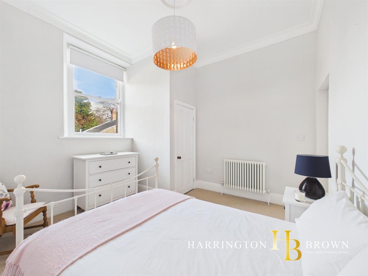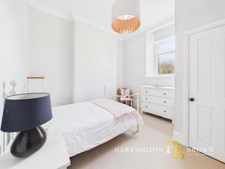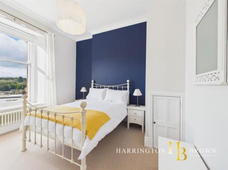 Ascending via a split-level landing to the second floor, there are two well-proportioned bedrooms of similar size, each enjoying sash windows and column radiators. Bedroom one benefits from particularly attractive views, overlooking the beautifully maintained communal gardens and enjoying leafy evergreen aspects towards the Derwent Valley. The elevated position enhances both privacy and outlook.