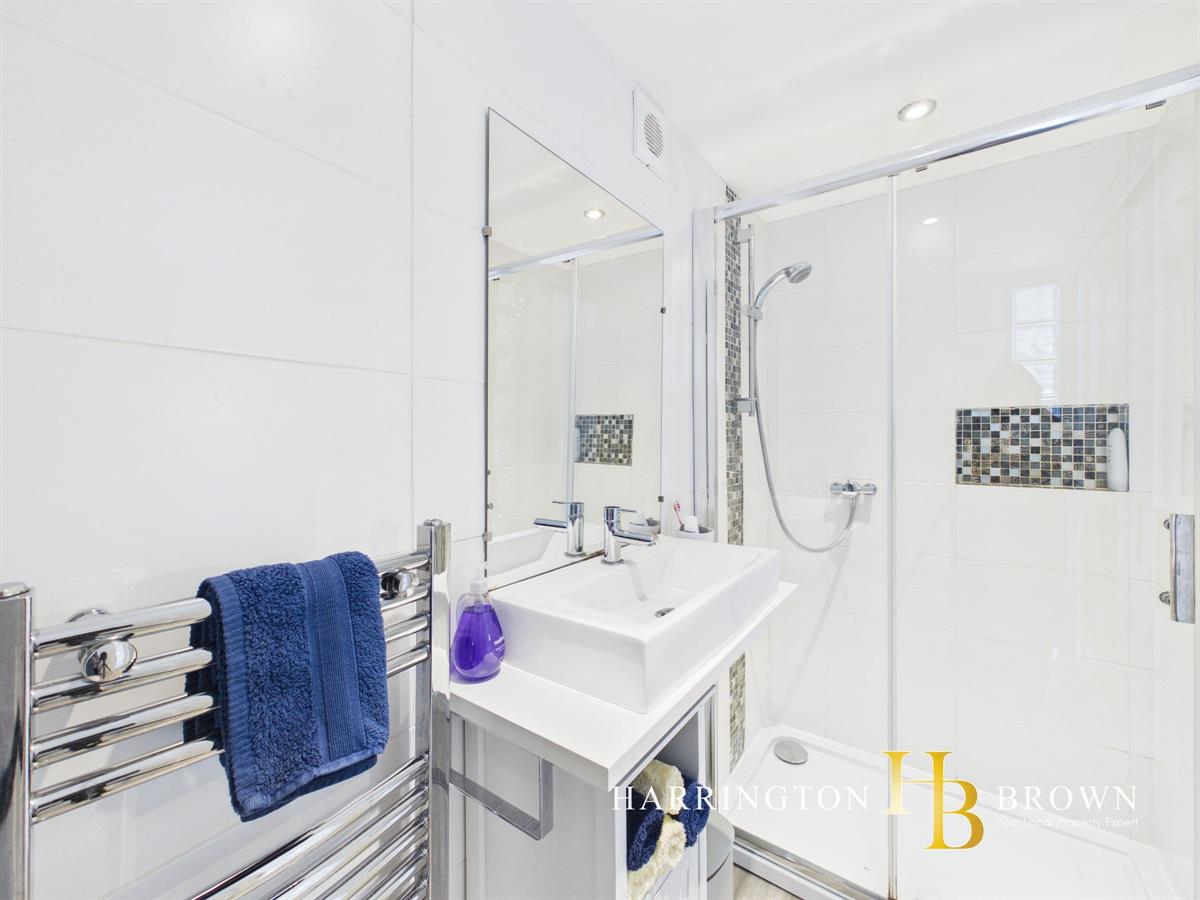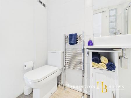 The bathroom is set up a further short flight of stairs and is appointed with a mains-powered shower with tiled surround, wash hand basin and WC, along with a chrome towel radiator. Heating is provided via a gas combi boiler.