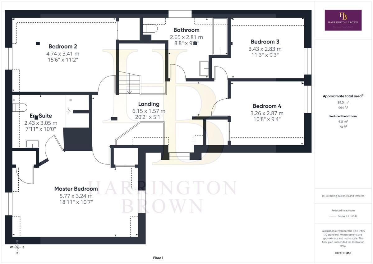 Master bedroom w: 5.77m x l: 3.24m (w: 18' 11" x l: 10' 8")