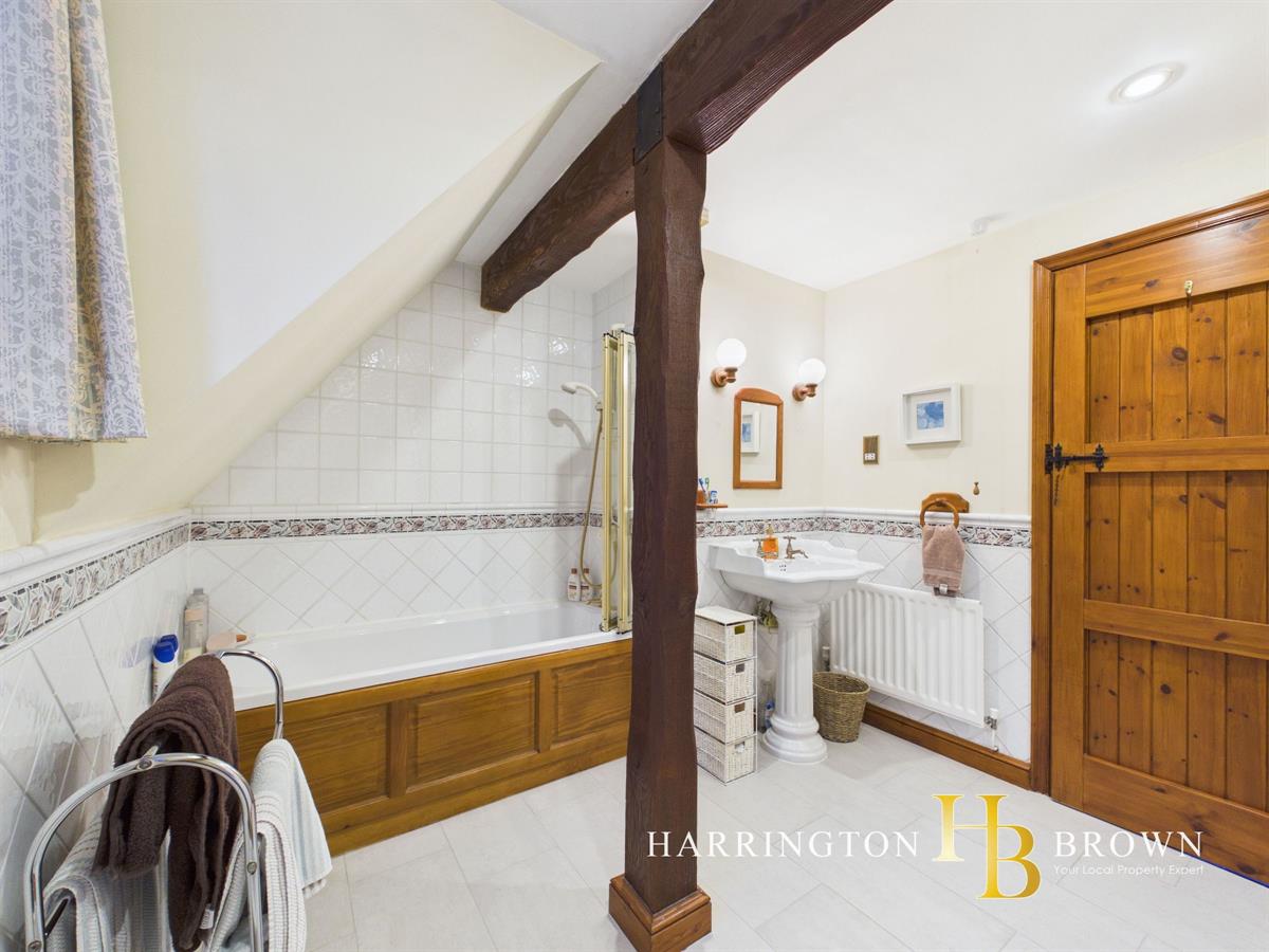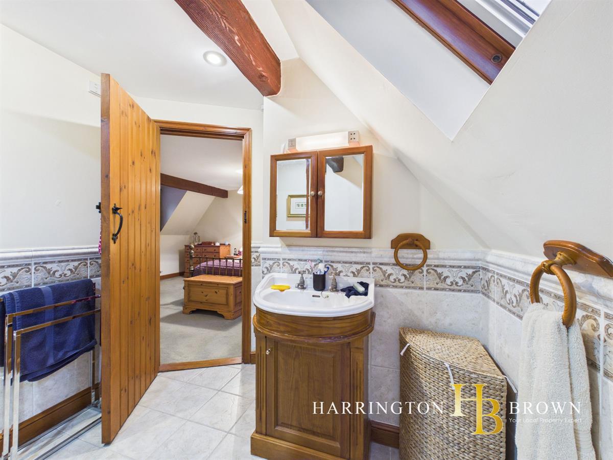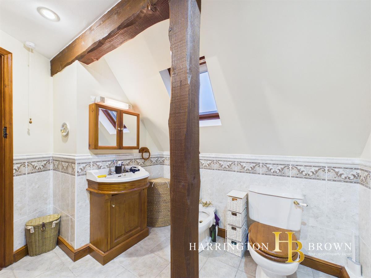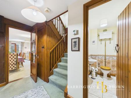 The ground floor also benefits from a traditional W.C featuring a low level toilet with suspended cistern and chain flush, complemented by beautiful intricate tiles to the lower portion of the walls, adding further period character.
