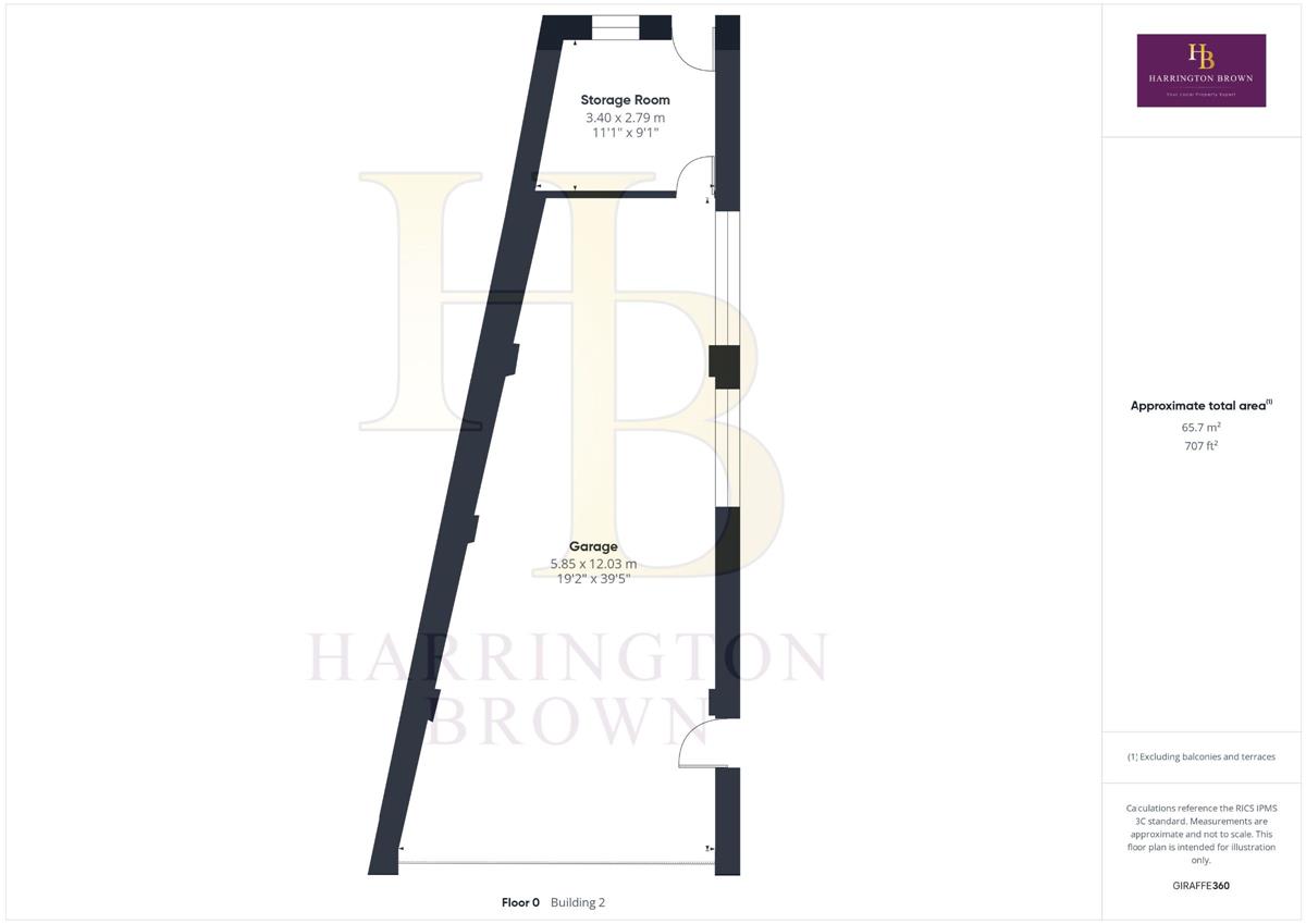 Garage w: 5.85m x l: 12.03m (w: 19' 2" x l: 39' 6")