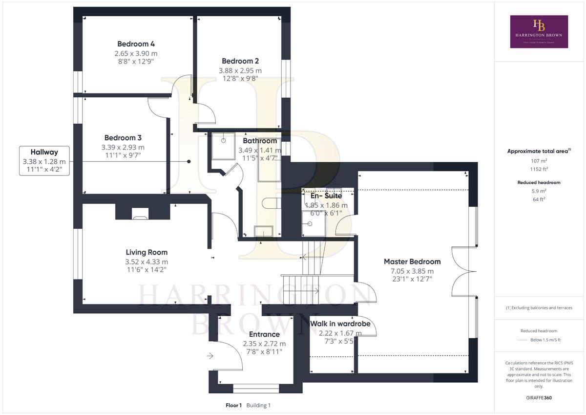Master bedroom w: 7.05m x l: 3.85m (w: 23' 2" x l: 12' 8")