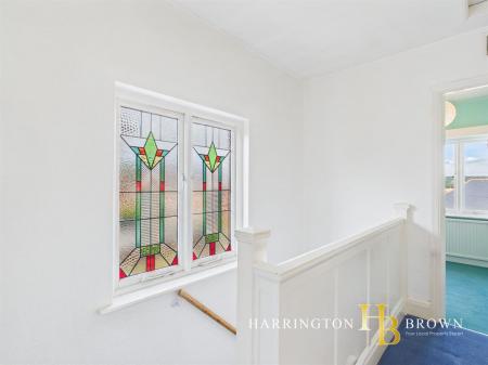 The first floor reveals a light and airy landing with side stained-glass window, three comfortable bedrooms and a family bathroom with a classic white suite. The principal bedroom enjoys countryside views from its bayed window - an idyllic outlook to wake up to. Original timber-framed windows enhance the home's traditional charm.