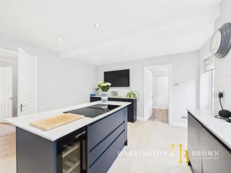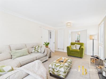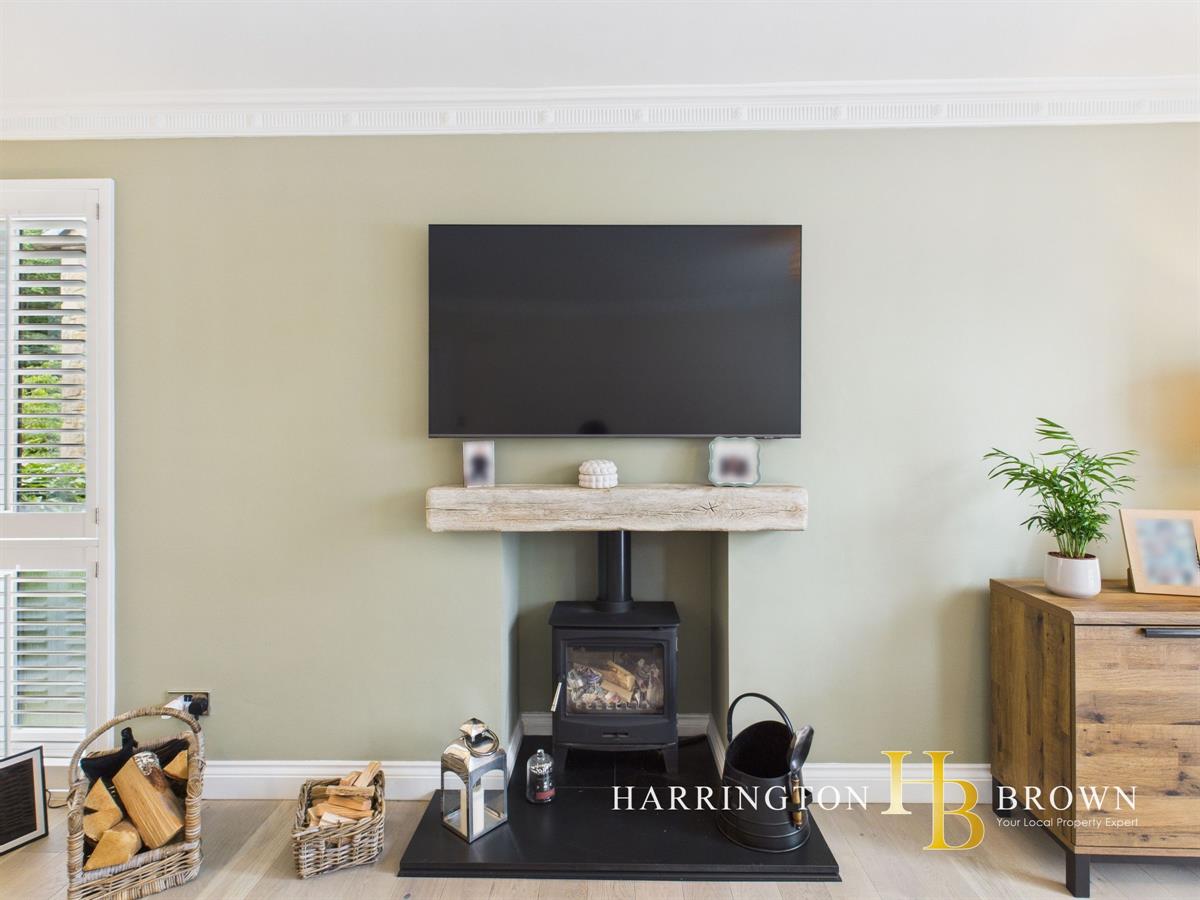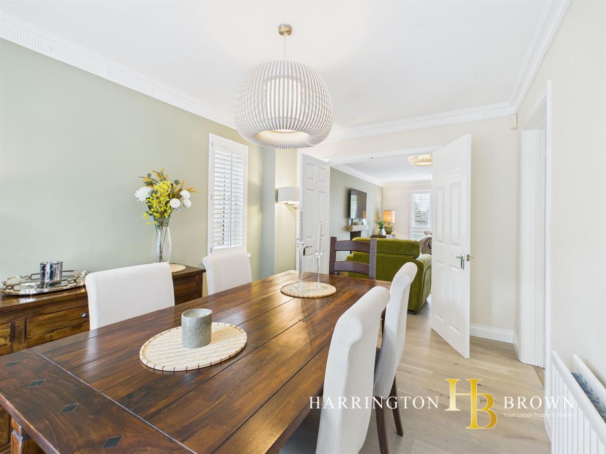 The property opens with an entrance vestibule and a ground-floor W.C., leading through to a welcoming inner hallway that sets the tone for the space within. The lounge exudes warmth and character, enjoying a triple aspect, attractive new flooring, and the focal point of a log-burning stove. Double doors open to the dining room, where French doors extend the living space into the garden, creating a perfect environment for family gatherings or entertaining.