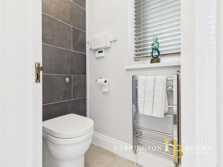 Externally, the property is approached by a block-paved driveway offering ample parking and access to the garage. The rear garden has been thoughtfully landscaped to create a private and inviting outdoor retreat, complementing the home's stylish interiors.