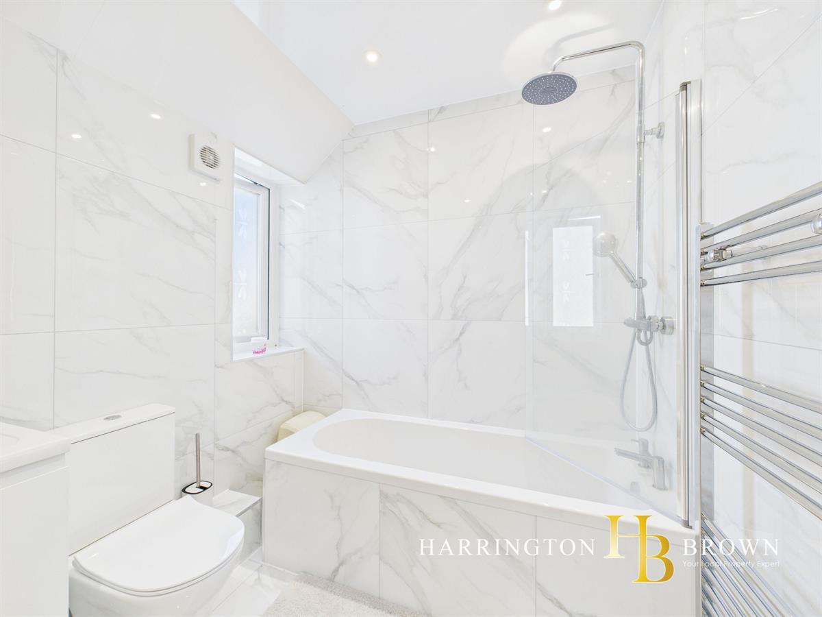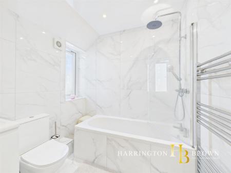 Upstairs, a spacious landing provides access to three generous bedrooms, the bathroom has been recently renovated to a high standard and is fully tiled, providing a luxury feel with a shower over the bath, sleek vanity unit, and a heated towel rail.