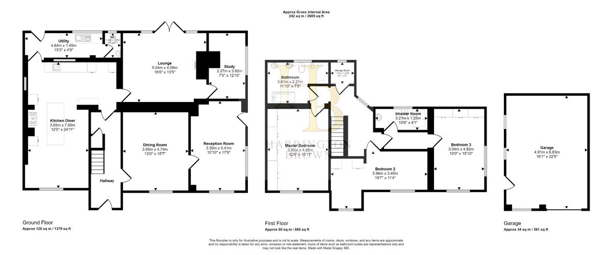 Kitchen/diner w: 3.65m x l: 7.6m (w: 12' x l: 24' 11")