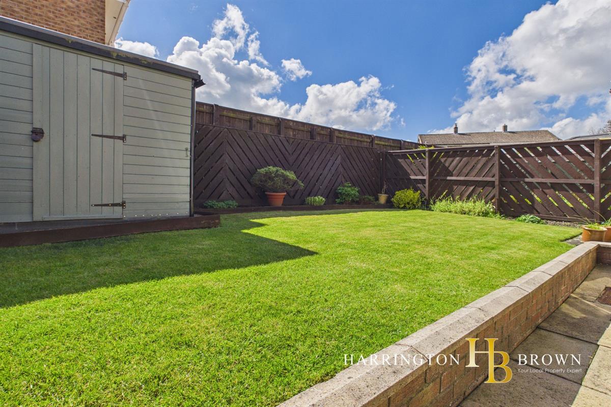 Externally, the property continues to impress. To the front, there is a generous driveway providing ample off street parking, alongside a lawned garden area and access to the garage, which is suitable for a vehicle and houses the gas combination boiler. A side access leads through to the rear garden, where a beautifully maintained south west facing space awaits. The garden features a paved seating area, ideal for outdoor dining, a raised lawn and a storage shed, all benefiting from a sunny aspect throughout the day.