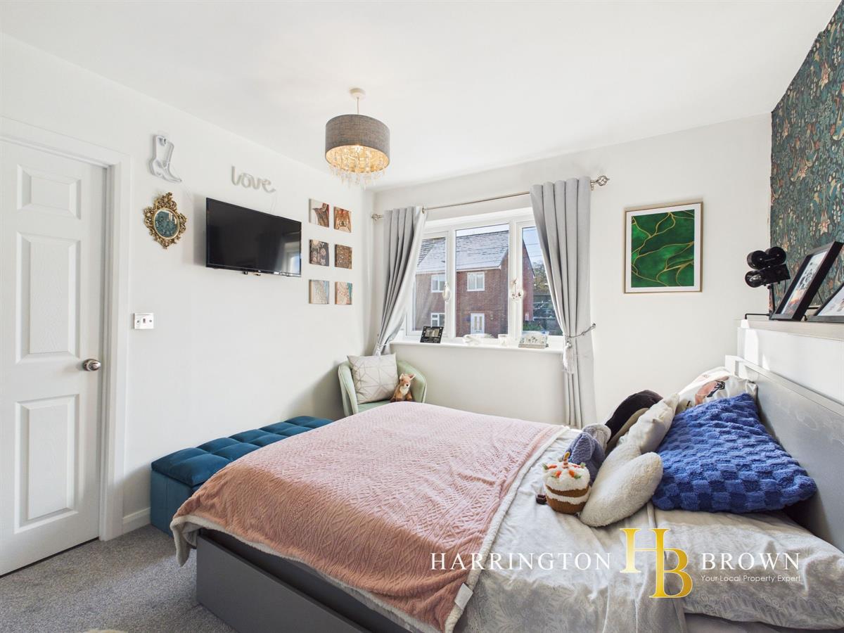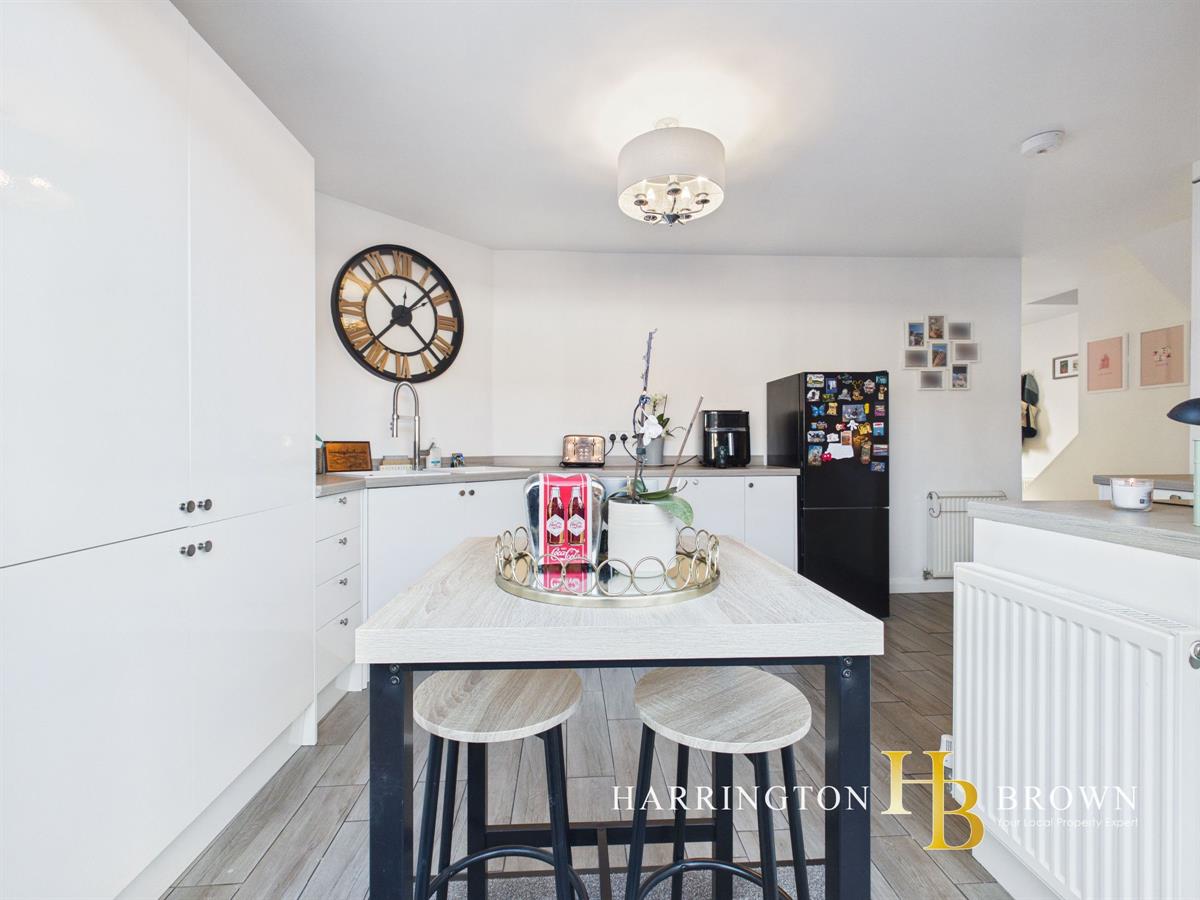 Upon entering, you step into a spacious entrance hallway with elegant hard flooring that leads to a bright lounge with a cosy atmosphere. The kitchen is the hub of the home, providing ample space for dining, with patio doors that open onto a small balcony-perfect for alfresco dining during the warmer months. Integrated appliances include oven, hob and dishwasher. The ground floor also benefits from downstairs WC, a utility room, and a handy storage cupboard for a added convenience.