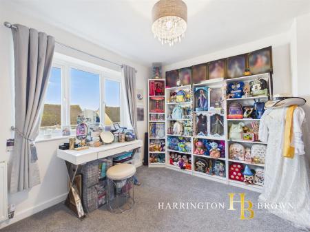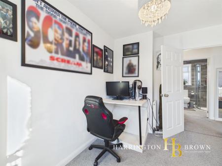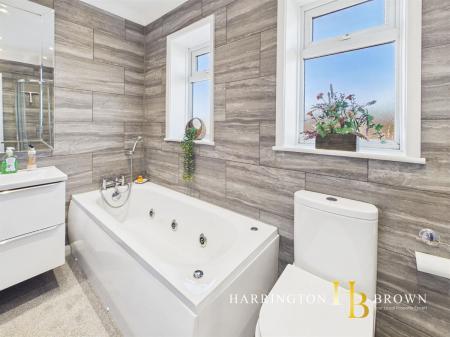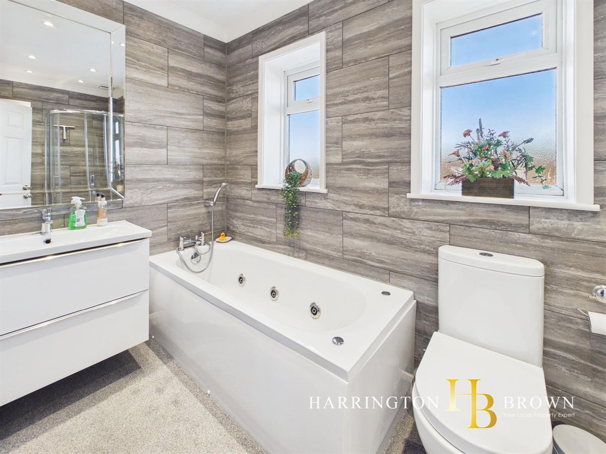 Upstairs, the bathroom is designed for relaxation, boasting a luxurious jacuzzi bath alongside a separate shower, offering a perfect space to unwind. The master bedroom impresses with its generous size and a walk-in wardrobe, providing excellent storage. Two further well-proportioned bedrooms complete the accommodation, with loft access available from the landing for additional storage.