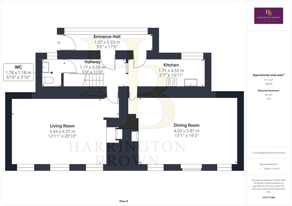 Entrance Hall w: 1.07m x l: 5.33m (w: 3' 6" x l: 17' 6")