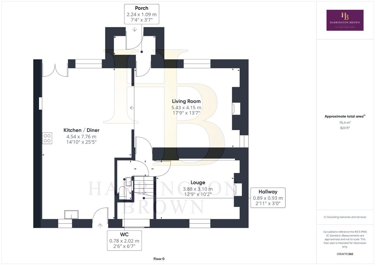 Porch w: 2.24m x l: 1.09m (w: 7' 4" x l: 3' 7")