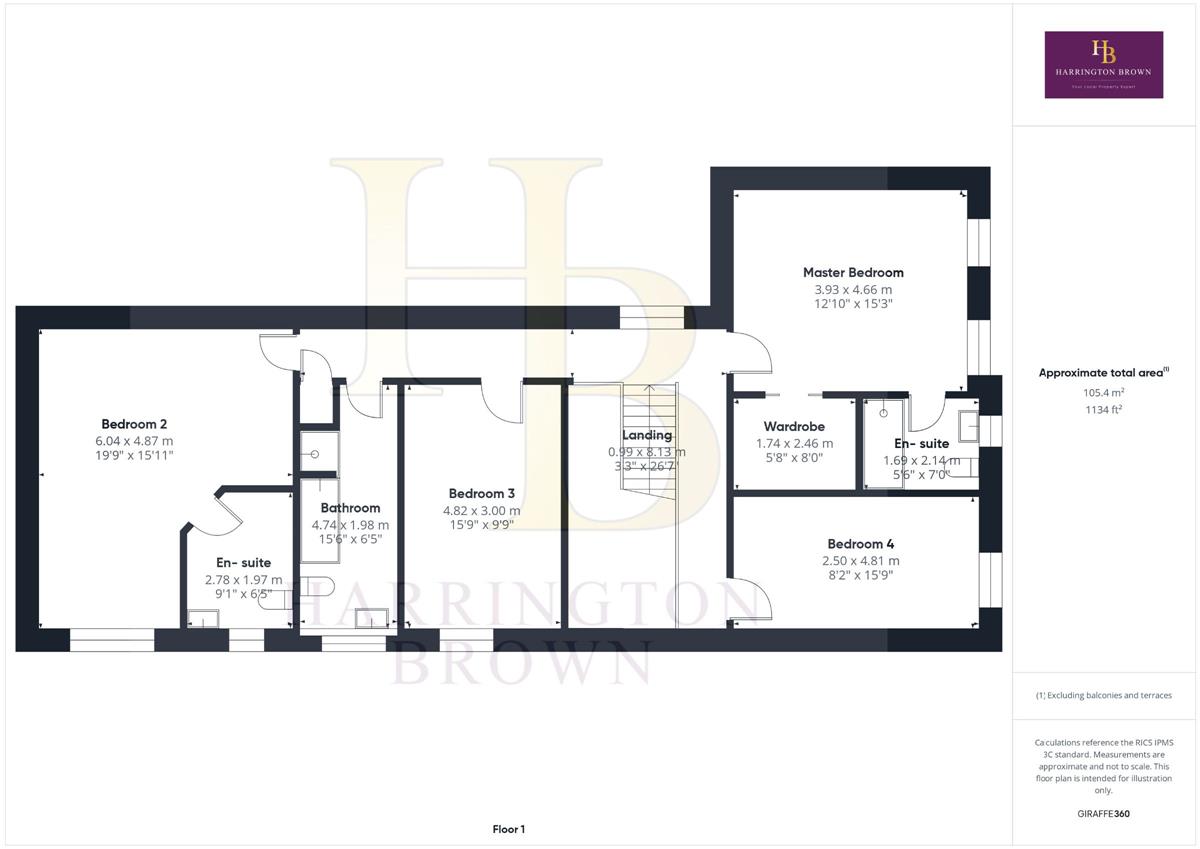 Master bedroom w: 3.93m x l: 4.66m (w: 12' 11" x l: 15' 3")