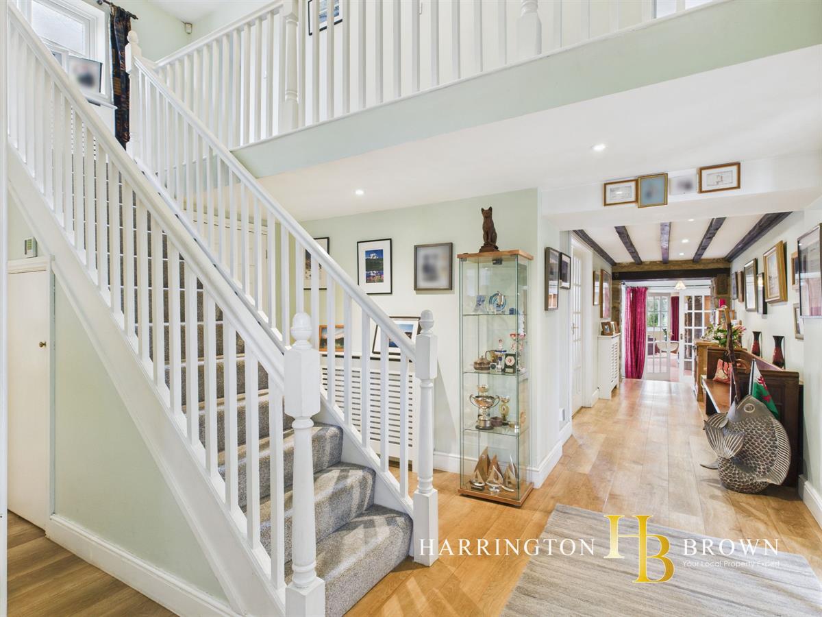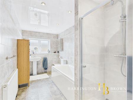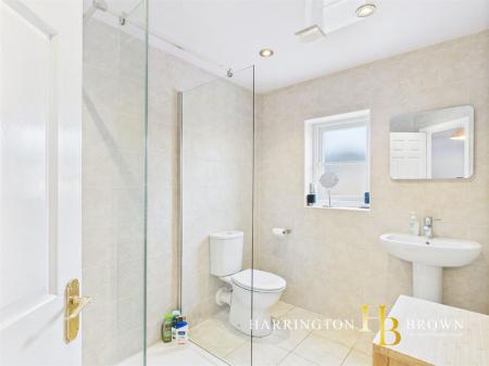 A WC and a useful storage cupboard are positioned to either side of the open staircase, which leads to the first floor where the accommodation continues to impress. There are four generously proportioned double bedrooms, including a principal suite with walk-in wardrobe and en-suite shower room. Two further bathrooms, including an additional en-suite, ensure comfort and convenience for family and guests alike.