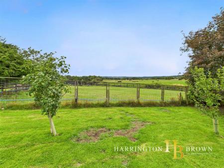 Externally, the front of the home is approached via a smart paved courtyard with ample parking and access to the double garage. To the rear, a beautifully maintained lawned garden includes a patio for outdoor dining, a shed, and a log store, all framed by sweeping rural views that offer a peaceful and scenic backdrop year-round.