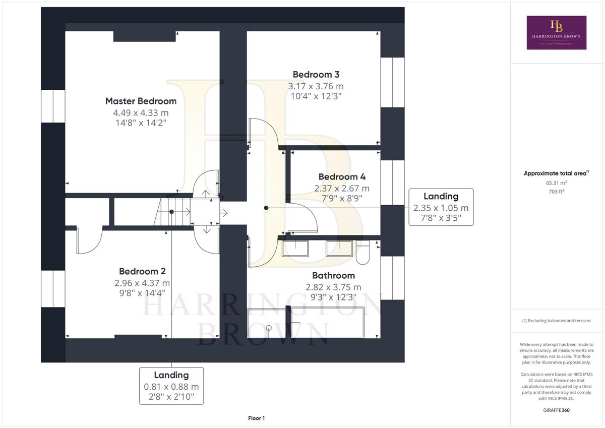 Master bedroom w: 4.49m x l: 4.33m (w: 14' 9" x l: 14' 2")