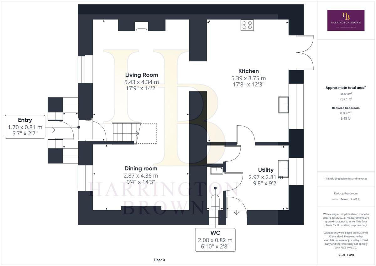 Kitchen w: 5.39m x l: 3.75m (w: 17' 8" x l: 12' 4")