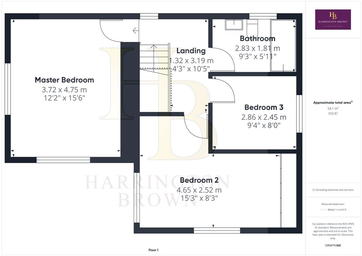 Master bedroom w: 3.72m x l: 4.75m (w: 12' 2" x l: 15' 7")