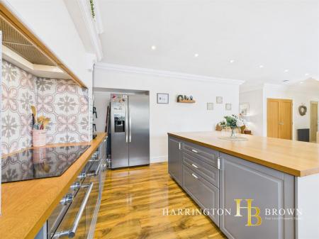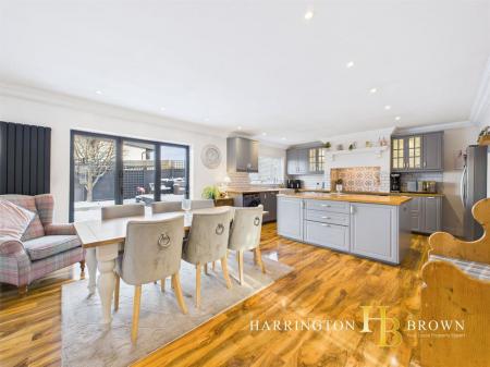 This beautifully refurbished THREE bed double-fronted detached bungalow offers an exceptional blend of style, comfort, and practicality. Upon entering, a welcoming hallway flows seamlessly through to a spacious open-plan kitchen and dining area, featuring bi-fold doors that flood the space with natural light and create a bright, relaxed atmosphere.