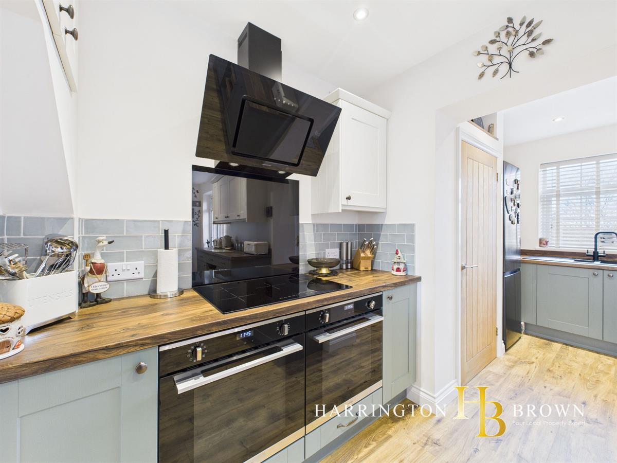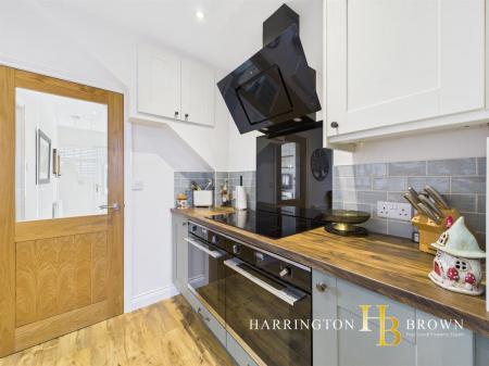 The charming hallway, adorned with oak flooring, guides you into a cosy lounge featuring a multi-fuel stove and open views of the countryside. This flows seamlessly into a tastefully decorated kitchen complete with double ovens, induction hob, and a breakfast bar perfect for casual dining. A clever space has been created for housing the washing machine and dryer.
