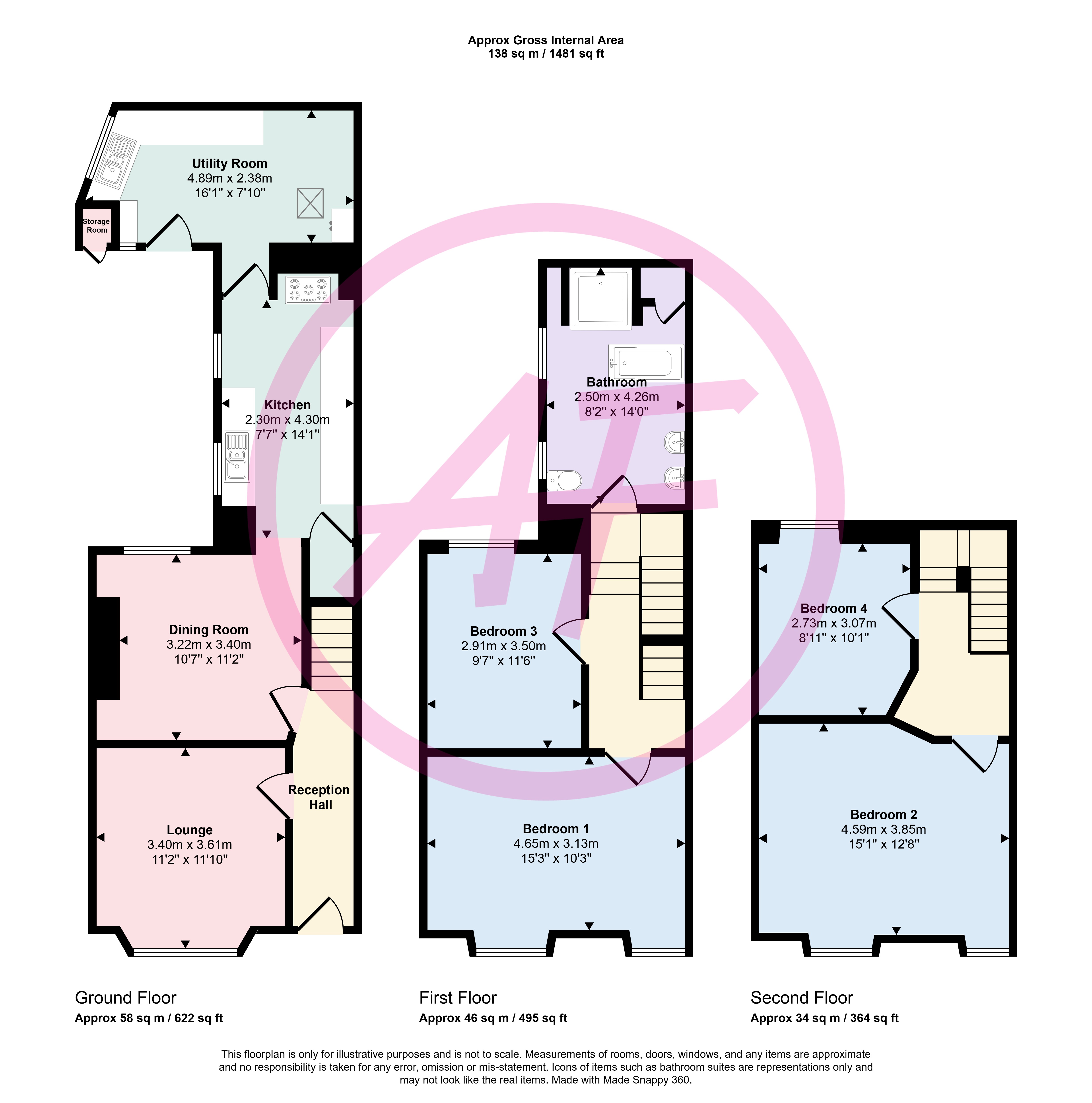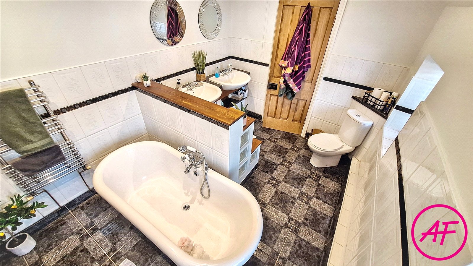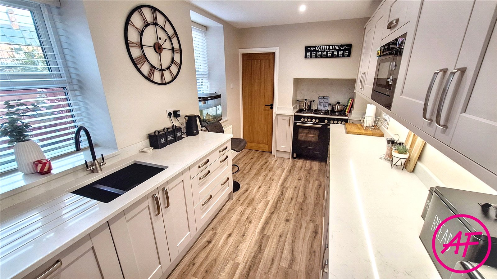 The very spacious, well presented accommodation is light and airy and offers ;- Reception Hall, Lounge with bay window, Dining Room, newly Fitted Kitchen, Utility Room, Celler (for storage), staircase up to a half Landing with a five piece Bath/Shower Room, on the first floor there is a large Double bedroom and small Double bedroom and this is replicated on the second floor.