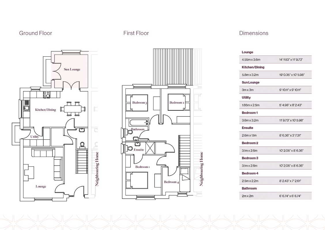 Comprehensive range of electrical sockets incorporating USB charging points, switches, TV and Telephone points. Wiring for future satellite points. Smoke, heat & carbon monoxide detectors. Energy efficient down lighting to Kitchen and Bathrooms. Feature external lighting to front and rear.
