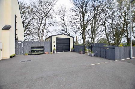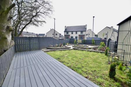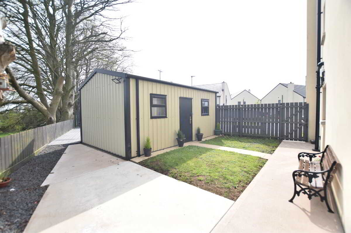 - Large corner site with composite decking, pre fabricated shed, feature garden area and concrete bbq area