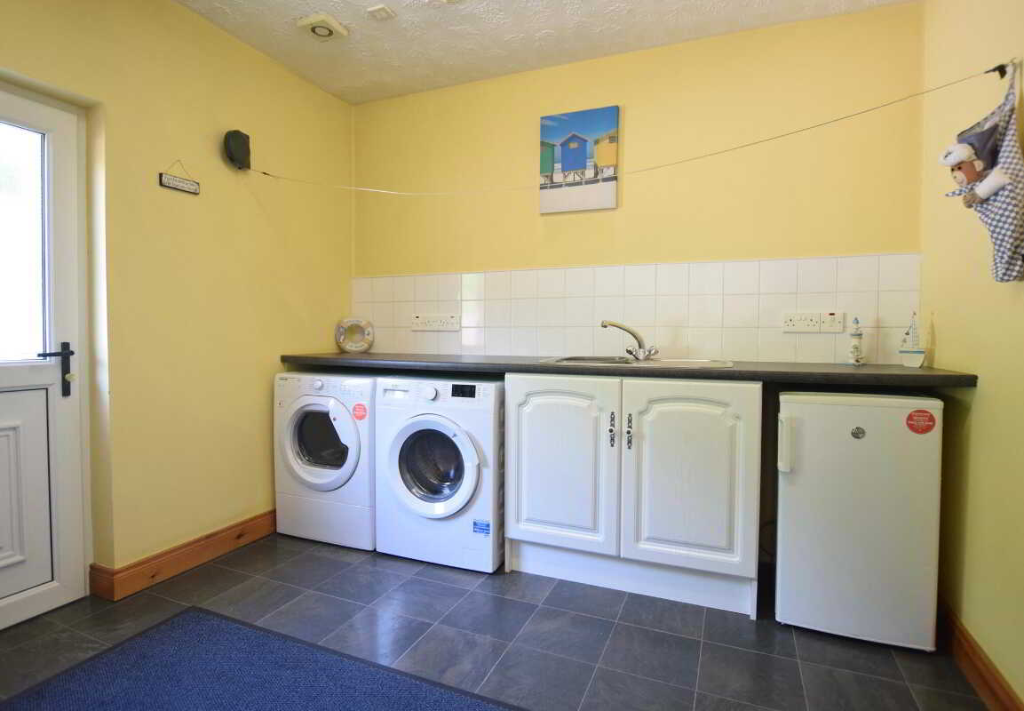 - Hallway; living room; kitchen, dining room; utility room; three bedrooms; bathroom.