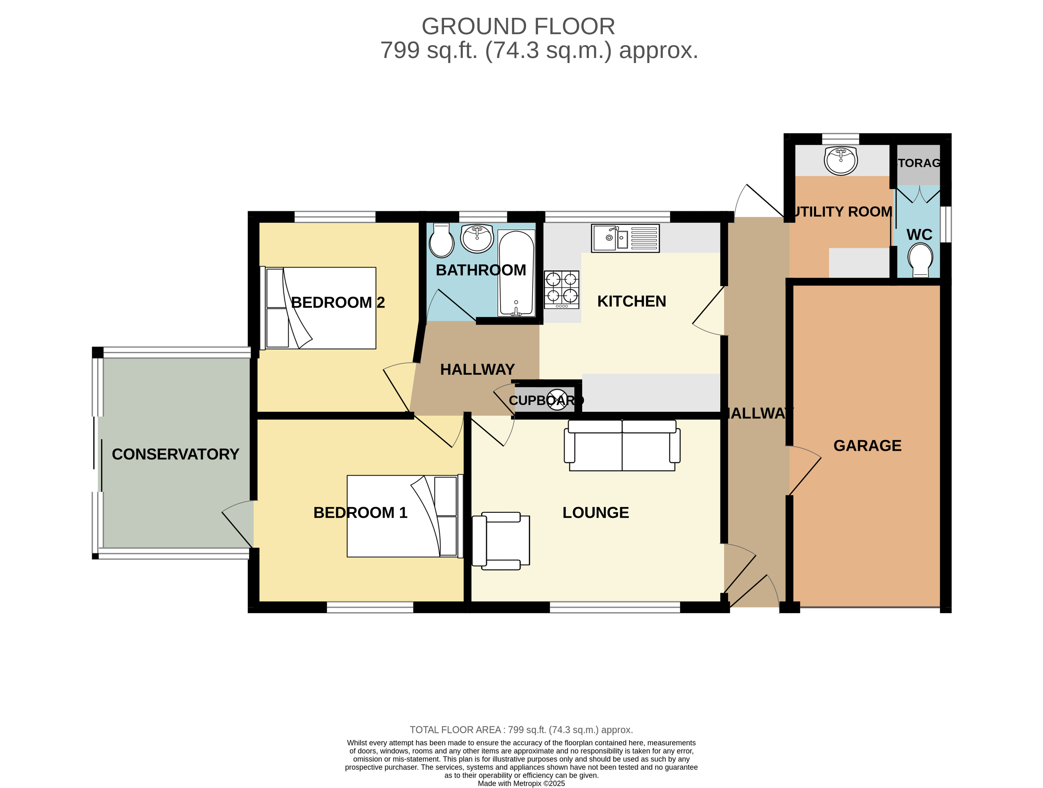 Internally there is a lounge, a fitted kitchen, two double bedrooms with a conservatory off the main bedroom. The conservatory ideally needs replacing. There is bathroom, a separate utility room and a separate cloakroom. The property is warmed by gas central heating and is fully double glazed.