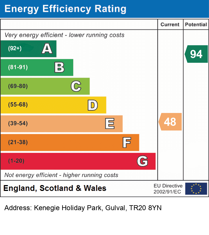 A beautifully presented and renovated two bedroom holiday bungalow, situated within the popular Kenegie Holiday Park, on the outskirts of Gulval, yet within close proximity of the town of Penzance and the South West Coast. The property is successfully holiday let and benefits from 12 month holiday occupancy and has use of communal areas such as gardens, swimming pool, tennis court and the site also has a bar. The accommodation comprises of two bedrooms, open plan lounge, dining room/kitchen, shower room and a patio to the rear with allocated parking space.
