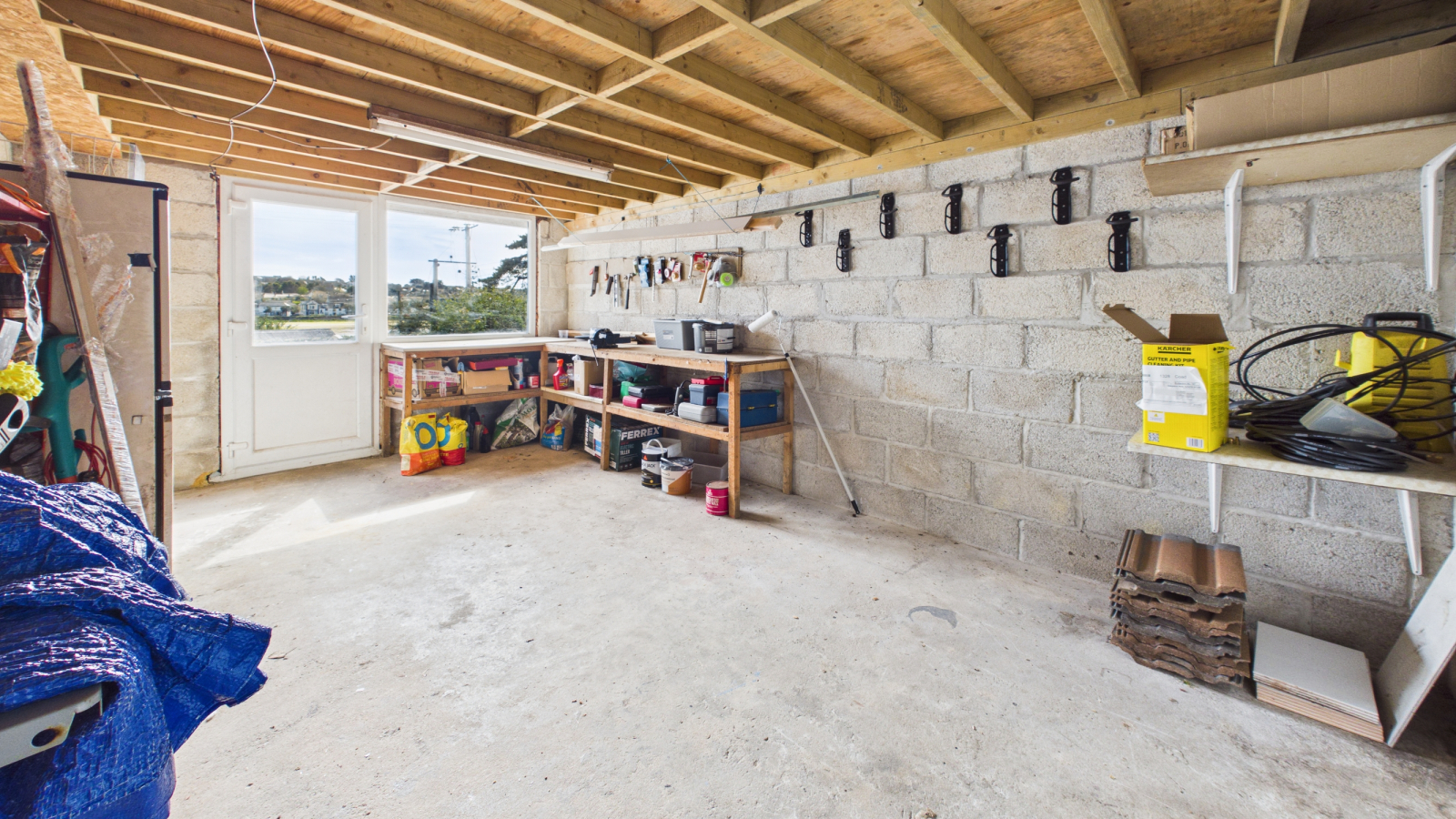 With metal up and over door, power and light, pedestrian door and window to the rear.