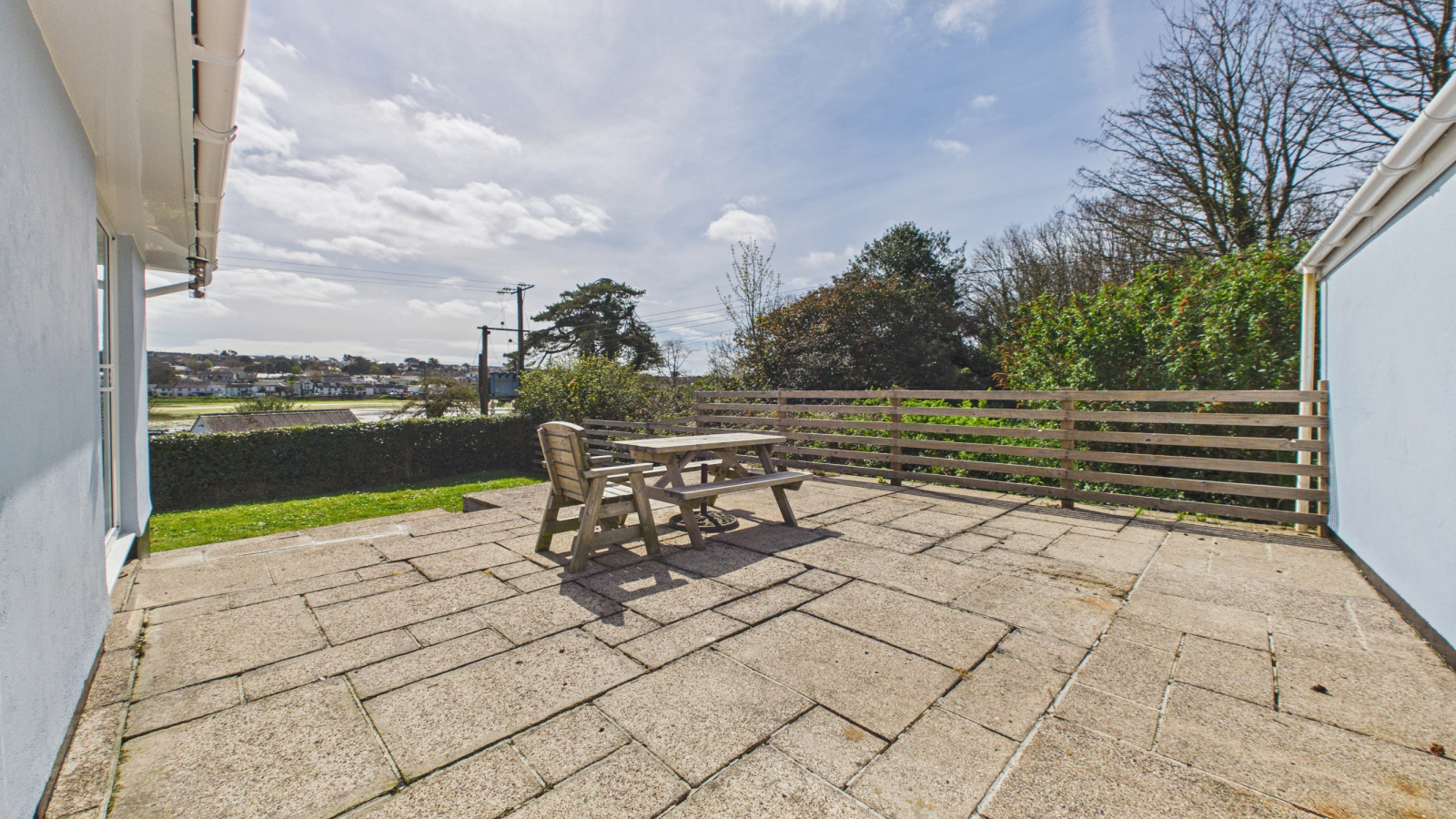To the front of the property there is a draveway offering parking for two/three vehicles leading to the garage, an area laid to lawn with hedge boundaries and gated access access to the side of the property leading to the front door. Continueing along the side of the property you reach the front garden which is laid to lawn and patio with a low hedge boundary to the front and fence to either side. There is a further raised patio area to the side of the property giving access to the living room and garage.