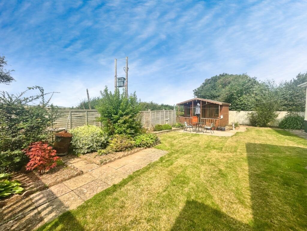 Outside - The rear garden is a generous, well kept space with a wide lawn and established planting to the borders. A paved patio provides an ideal spot for outdoor dining and seating, while a summerhouse offers versatile use as storage, a hobby room, or a quiet retreat. The garden is fully enclosed, enjoying privacy and open countryside views, making it both practical and inviting.