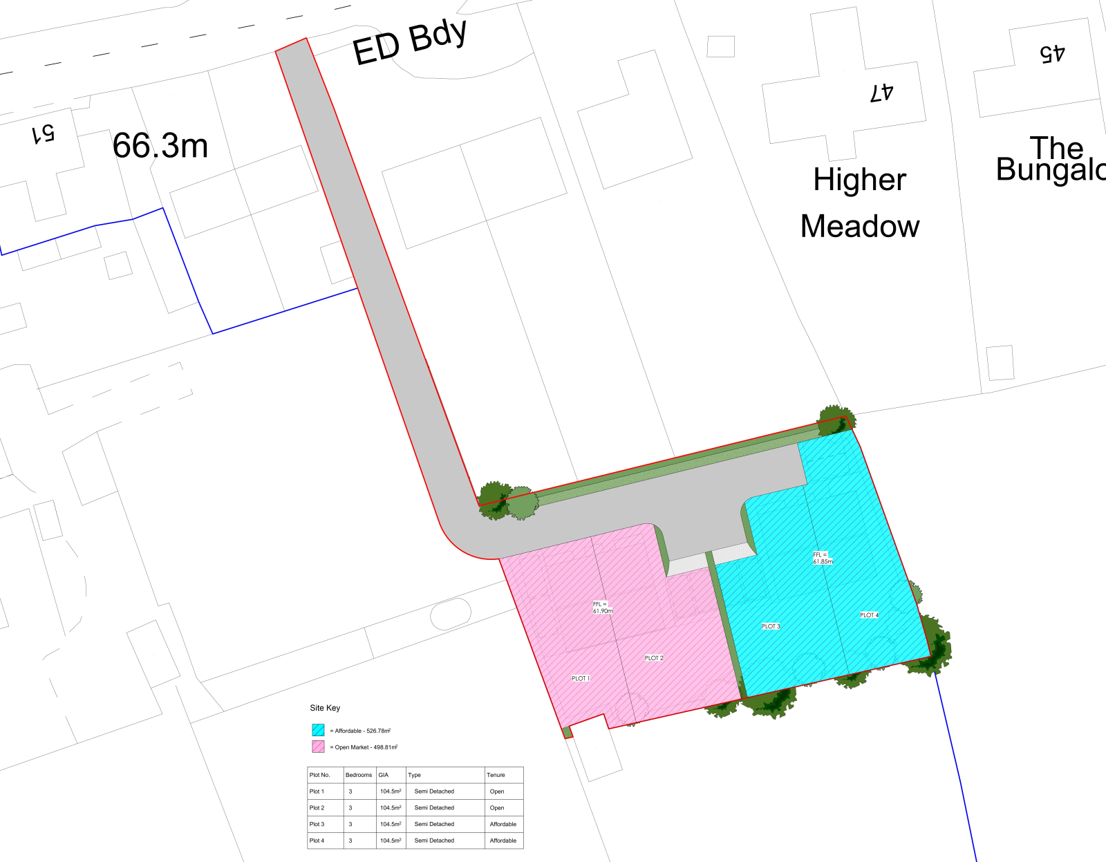 A superb opportunity to acquire a well positioned building plot with consent for four semi detached houses - two open market three bedroom homes and two three bedroom shared ownership homes. Each proposed property has been thoughtfully designed to offer modern, spacious living. The ground floor will feature a living room, a kitchen/dining room and a cloakroom. On the first floor there will be three double bedrooms and a family bathroom, making these ideal homes for families, first-time buyers, or investors. The properties will benefit from attractive rural views to the rear. Externally, each home will have two allocated parking spaces and private rear gardens laid to lawn. This plot represents an excellent development prospect in a desirable setting and an early enquiry is highly recommended.