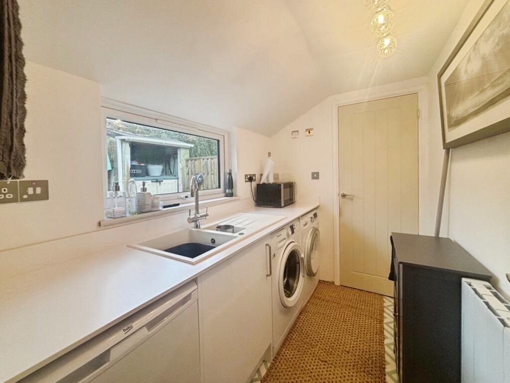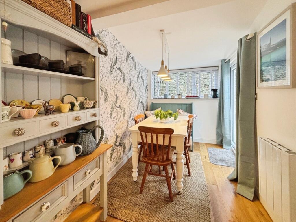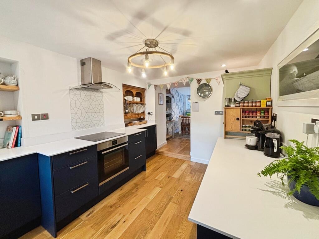Inside, the sitting room is full of character, featuring a wood burning stove as a central focal point. The modern kitchen is well appointed and leads through to a separate dining room, ideal for entertaining. Further ground floor accommodation includes a useful utility room and a shower room. On the first floor are three bedrooms.