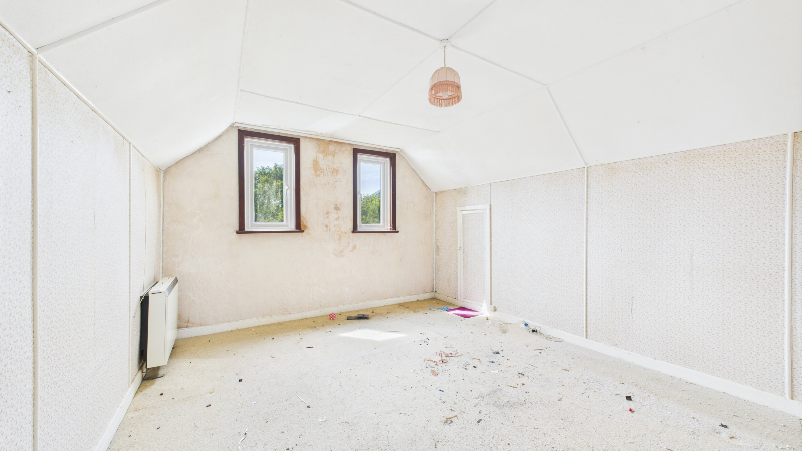 Two double glazed windows to side, eave storage, night storage heater.