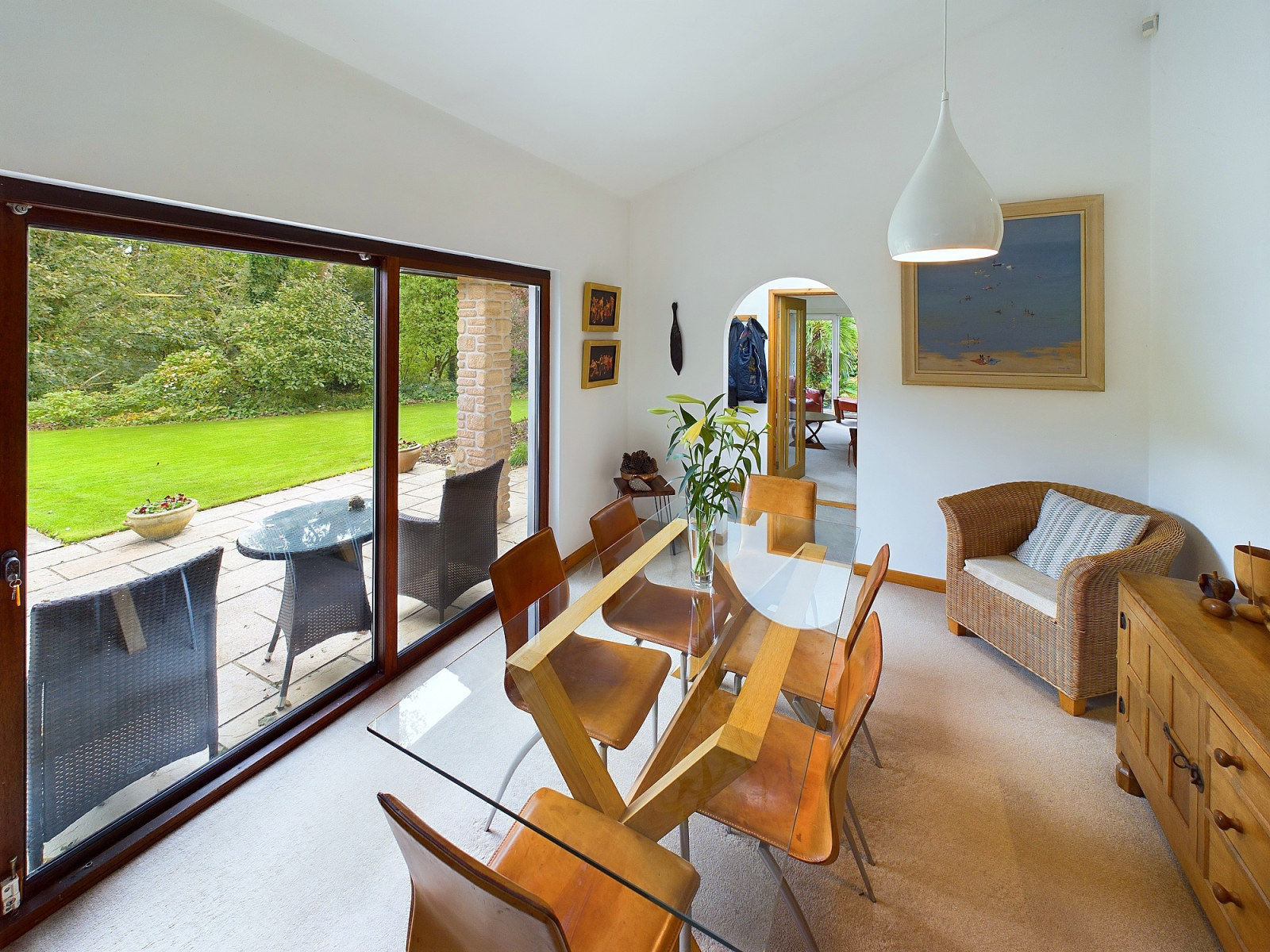 Double glazed patio doors enjoying a very pleasant outlook over the garden, vaulted ceiling, feature open arch to landing.