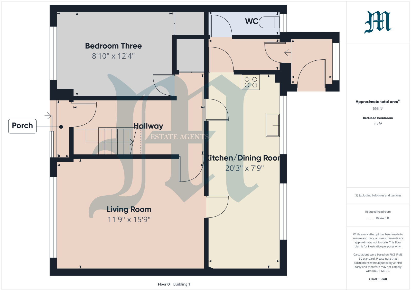 BEDROOM THREE: 12' 4" x 8' 10" (3.76m x 2.69m)