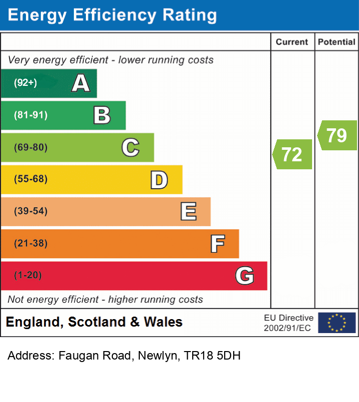 An end of terrace two/three bedroom dormer bungalow with corner gardens and garage on block, situated in an elevated position above the fishing village of Newlyn and enjoying both rural and stunning sea views towards St Michael's Mount. The accommodation comprises of third bedroom/dining room, lounge, kitchen, conservatory and family bathroom on the ground floor. There are two double bedrooms on the first floor, of which the main bedroom enjoys the aforementioned views. Gardens to three sides of the property, all enclosed by high level hedging and block wall with areas laid to patio and wooden shed with power and light. There is a garage in a block nearby and the bungalow is double glazed, gas centrally heated and would make an ideal family home.