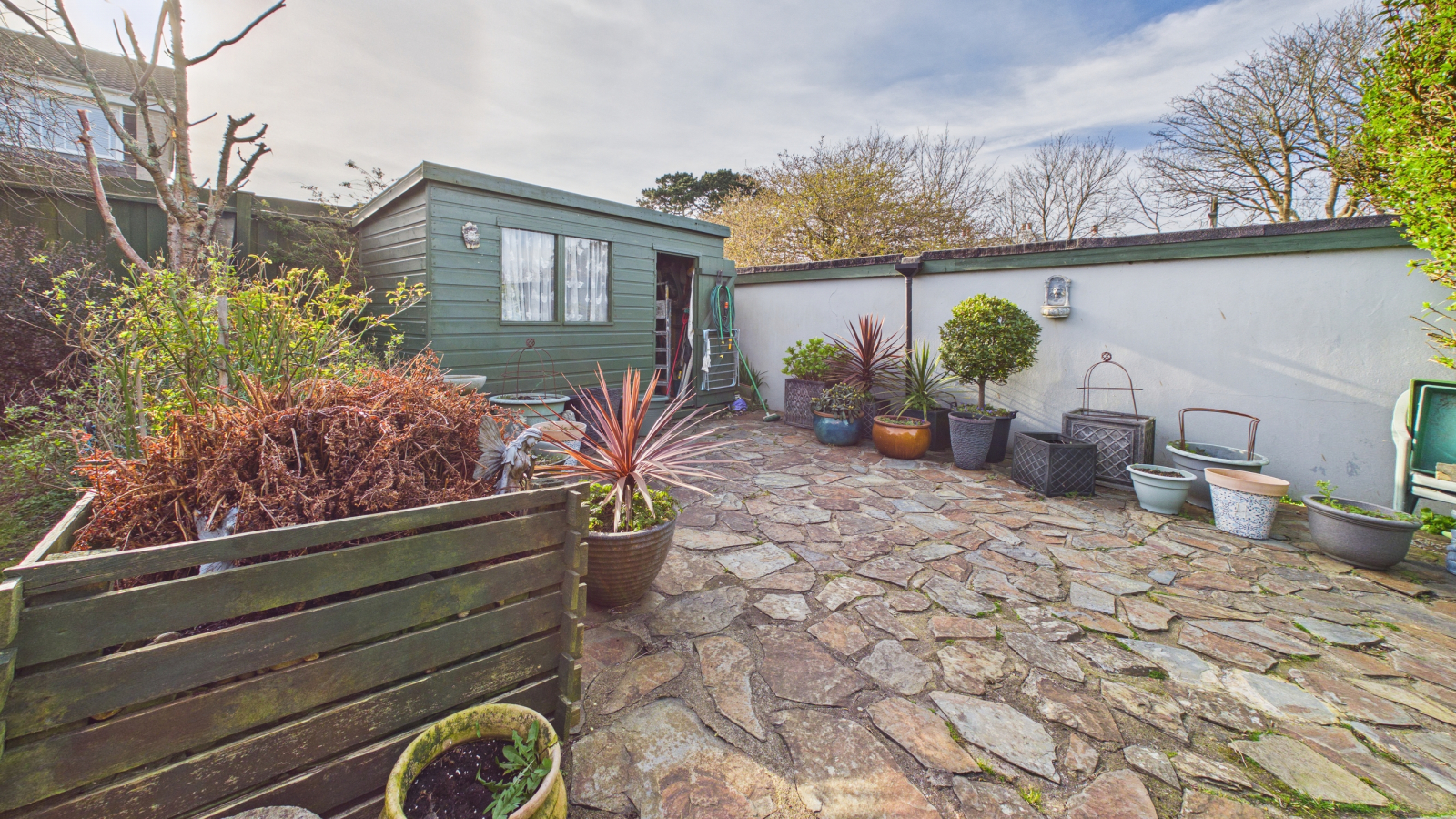 To the front of the property is a lawned garden, gateway to fully enclosed side garden, which again is laid to lawn with patio area, this in turn leads to the rear garden, which again is laid to lawn with two areas of patio with wooden shed with power and light.