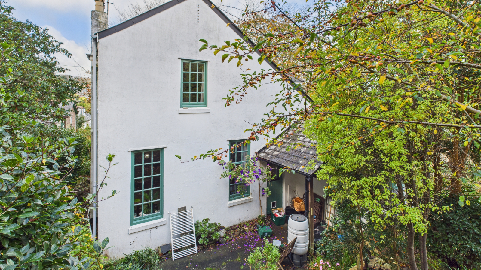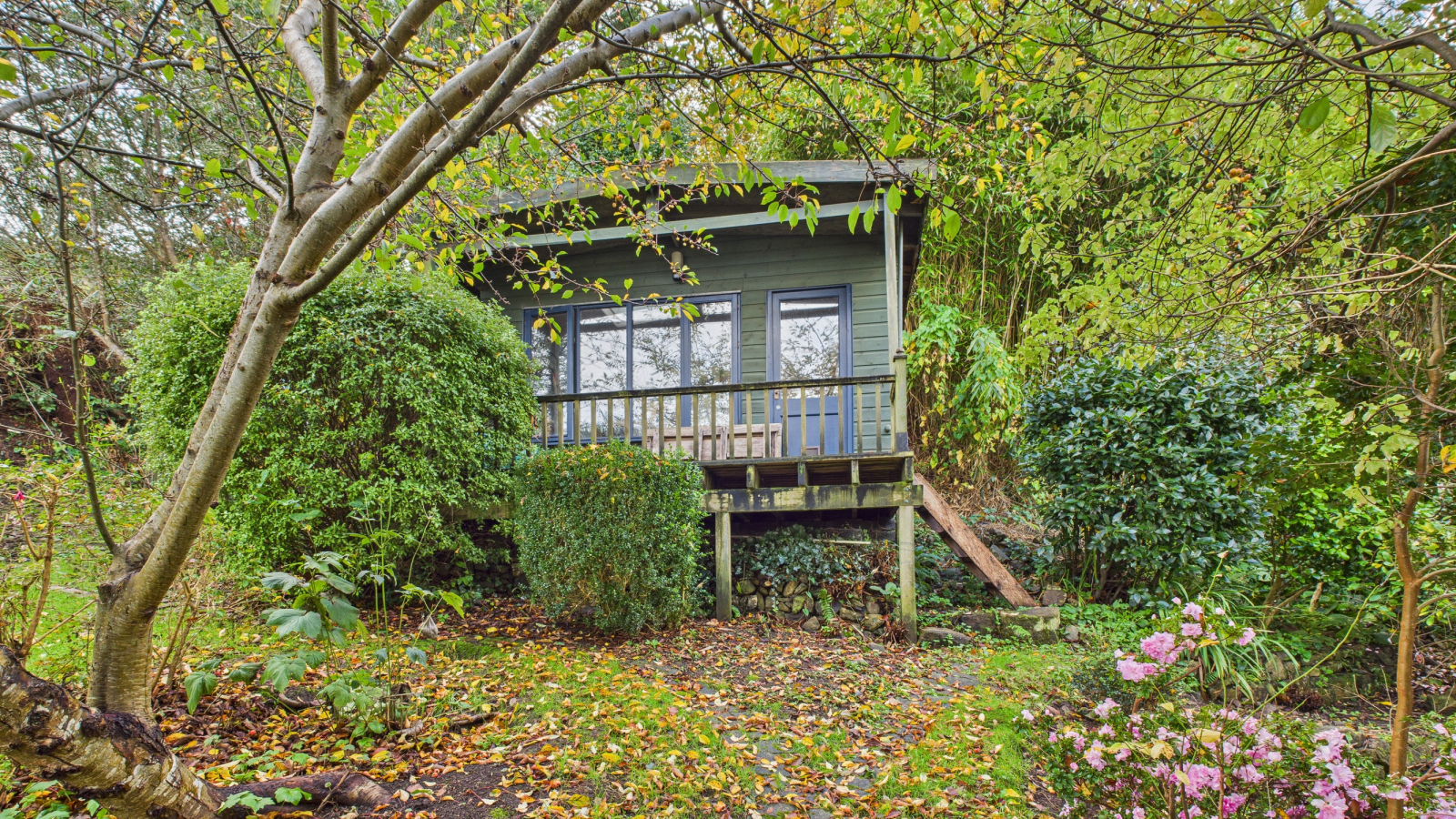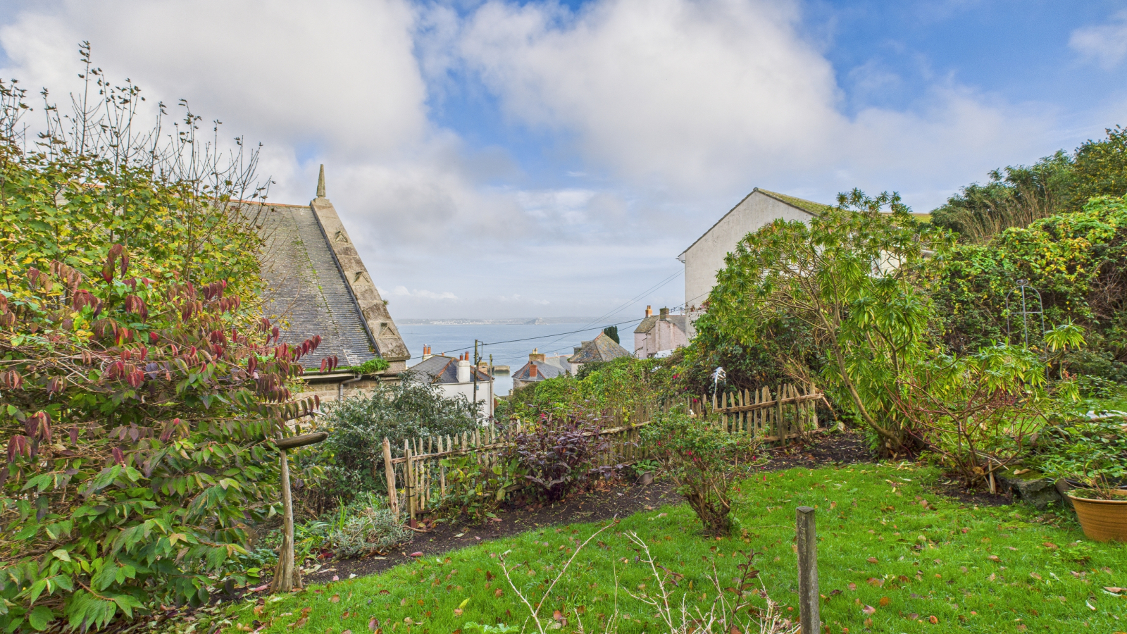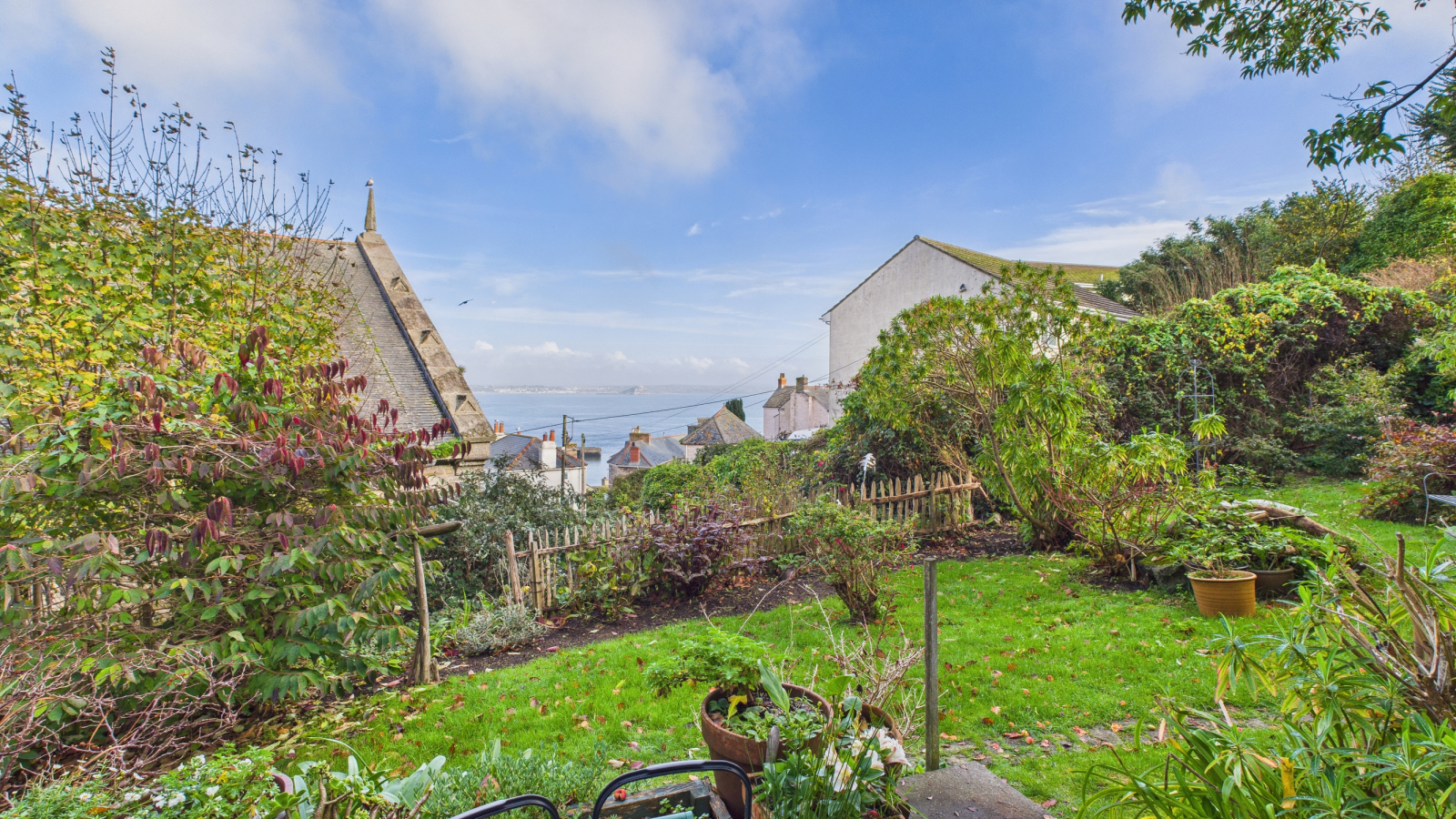 The property is approached over a pedestrian pathway leading to the gardens which surround the property, laid to lawn with established trees and bushes, patio adjacent to the dining room enjoys views across Newlyn Harbour towards St Michael's Mount, wooden shed, rear garden laid to lawn with raised wooden summer house, again enjoying the views with further wooden shed. The gardens are fully enclosed by established trees and shrubs, giving a high degree of privacy and enjoying the views.
