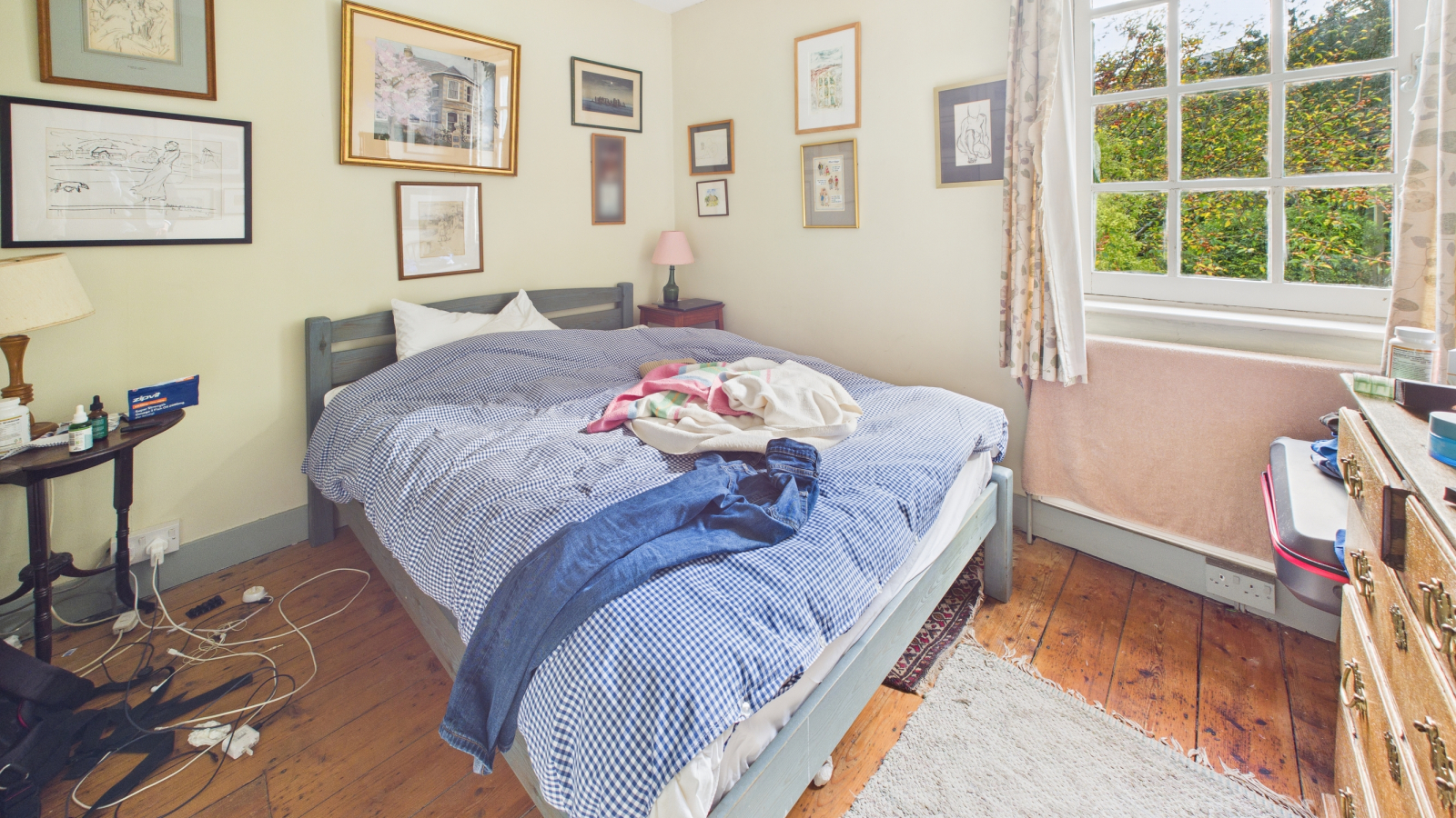 Window, wooden floor, radiator.