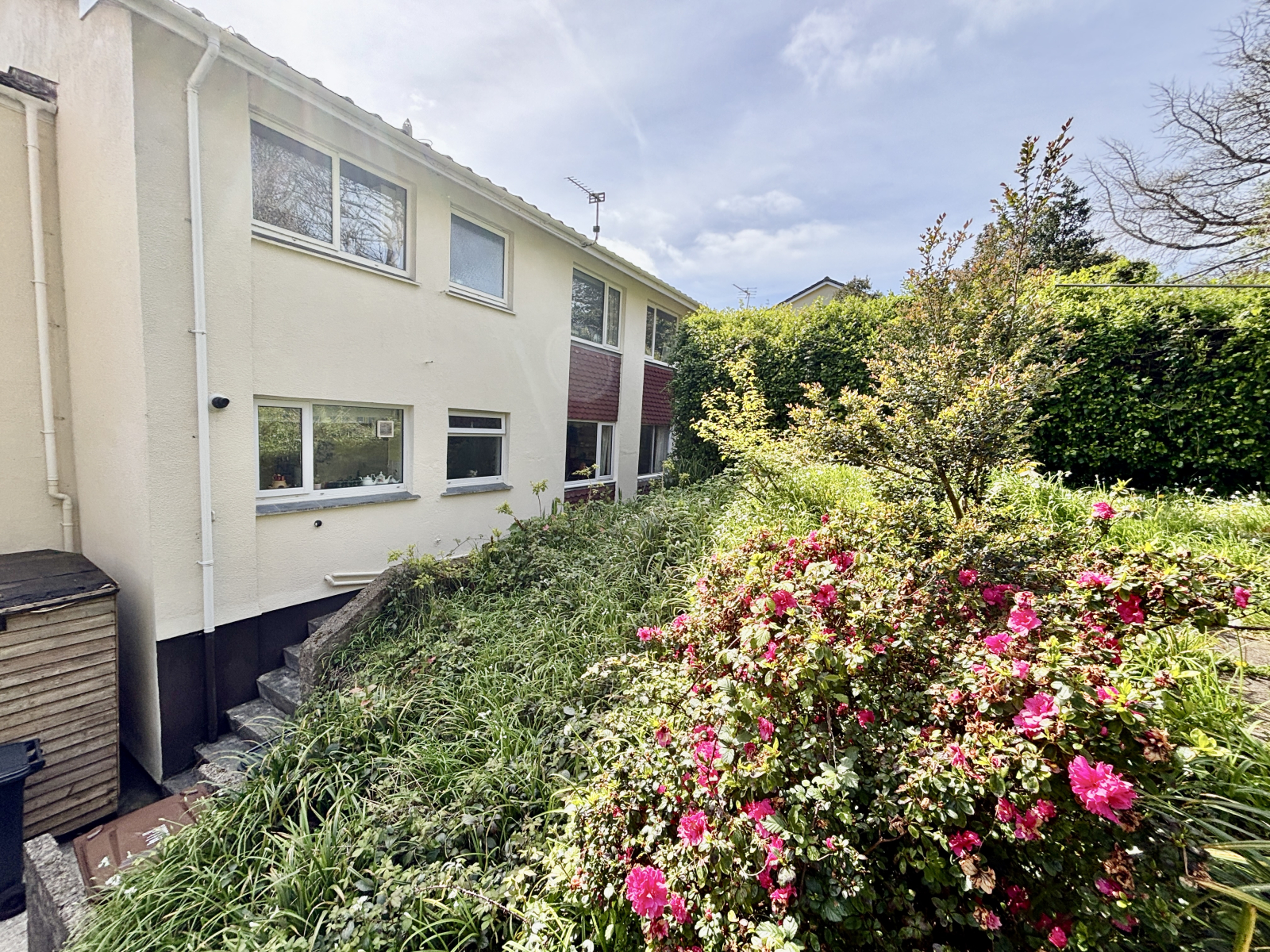 To the front is south facing front garden belonging to the flat with an area laid to patio and established shrubs and plants enjoying the views over Mounts Bay and beyond. There is residents parking area to the front and communal gardens and drying area to the rear.