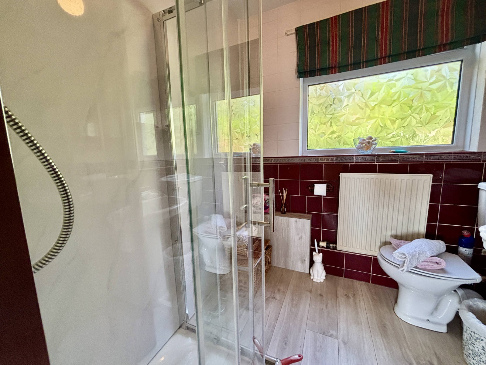 Double glazed window to rear, radiator, partially tiled walls, mains shower cubicle, pedestal wash hand basin, WC, shaver point.
