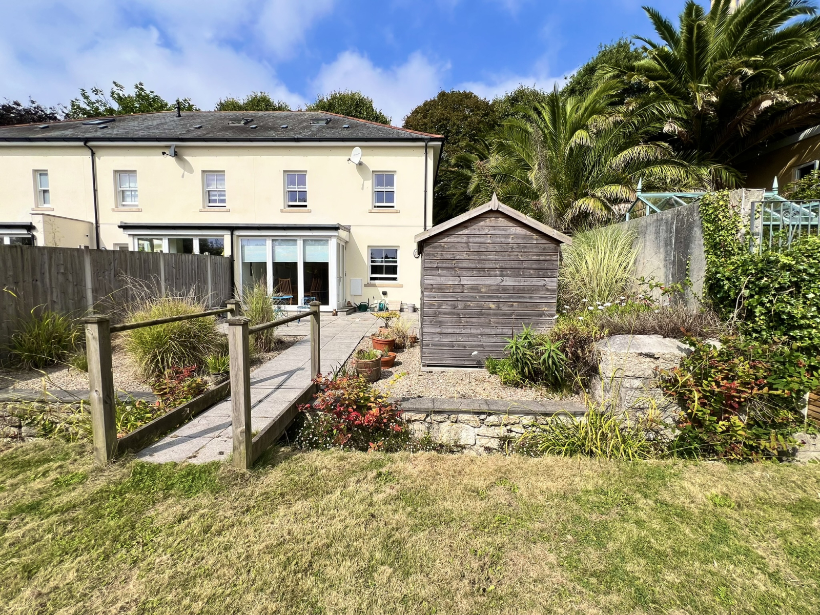 - ENCLOSED GARDENS WITH TERRACES LEADING TO LAWNED AREA BEYOND