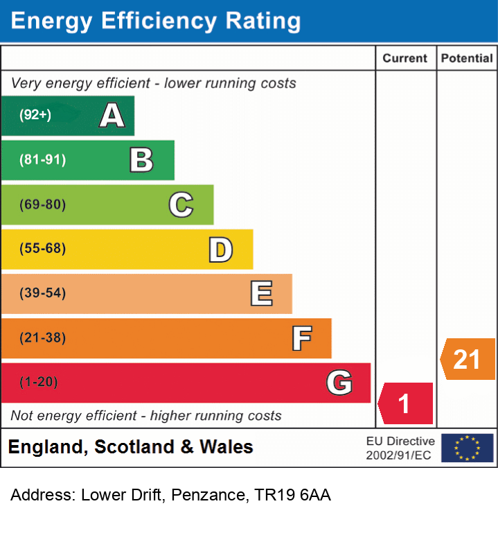 A three/four bedroom double fronted granite house, situated in the village of Drift, approximately 3 miles west of Penzance. This spacious accommodation comprises of lounge/dining room, secondary lounge/bedroom four, kitchen and study/utility area on the ground floor. On the first floor there are three double bedrooms and family bathroom. Gardens to both the front and rear of the property with off street parking and detached garage. The house is double glazed and heated via bottled gas central heating system and viewing is higly recommended.