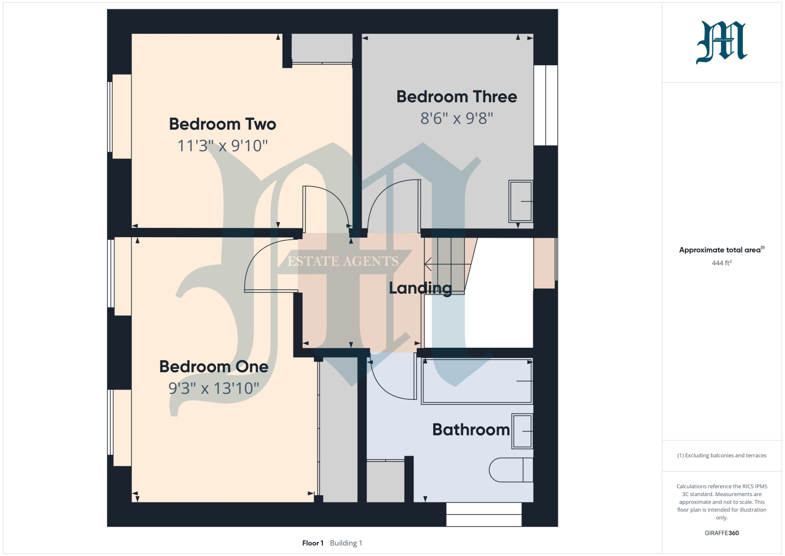 BEDROOM ONE: 13' 10" x 9' 3" (4.22m x 2.82m)