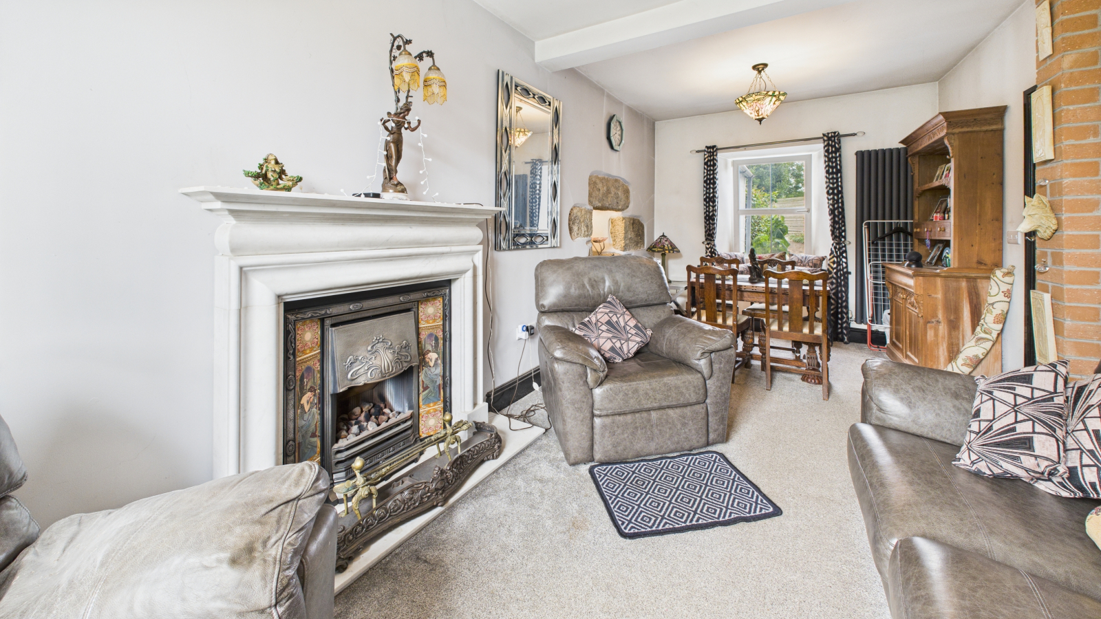 Double glazed windows to front and rear, gas fire on marble hearth, tiled surround with marble mantle over, recess to one side, radiator.