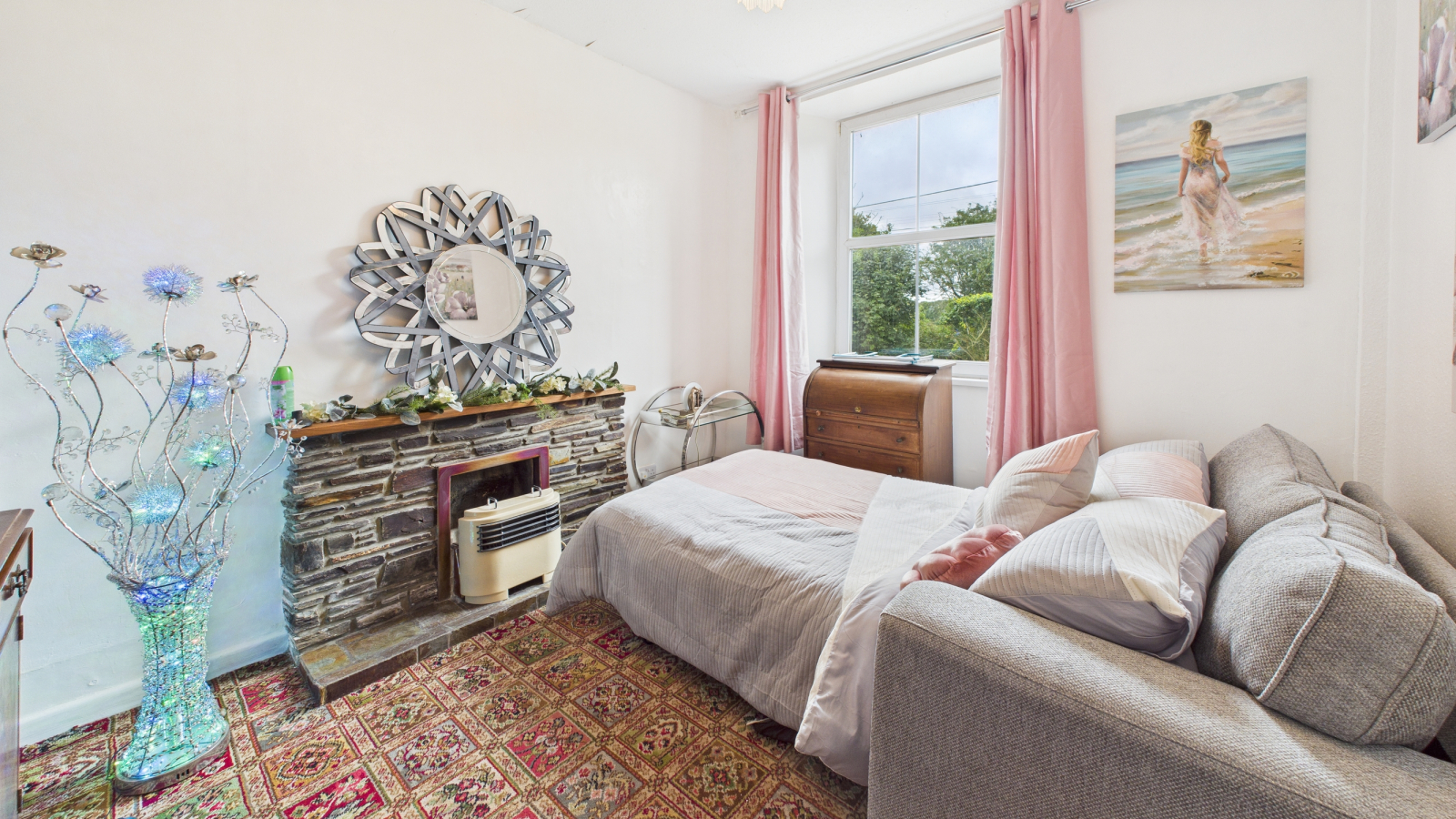 With slate fireplace to one wall, UPVC double glazed window to front.