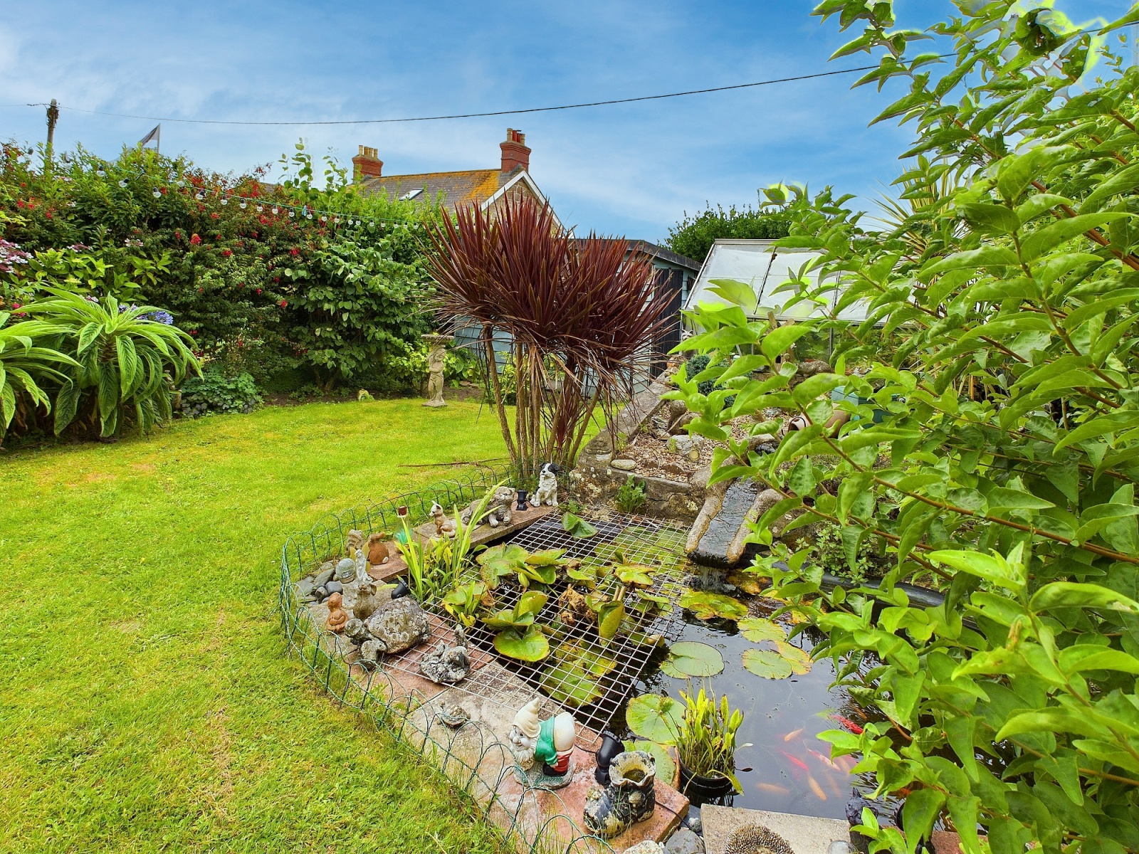 The property is approached over a central pathway leading to the front door with lawned gardens to either side all bordered by established shrubs and plants. The rear garden is fully enclosed with areas of patio, lawn and large fish pond fed by waterfall, wooden shed and aluminium greenhouse backs onto open farmland with views across Sennen beach. There is right of way for this property to cross next door to the front.